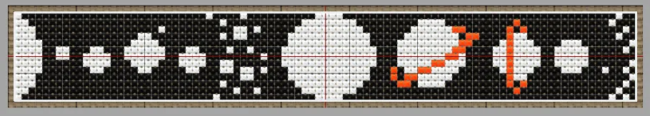 Дальше я осознала, что начала не с того: сначала нужно было заполнить фон, потому что его всё равно придётся вышивать, чтобы у браслета не светили отверстия основы. Для этого переключаю цвет канвы на более светлый и заполняю фон чёрными крестиками.
