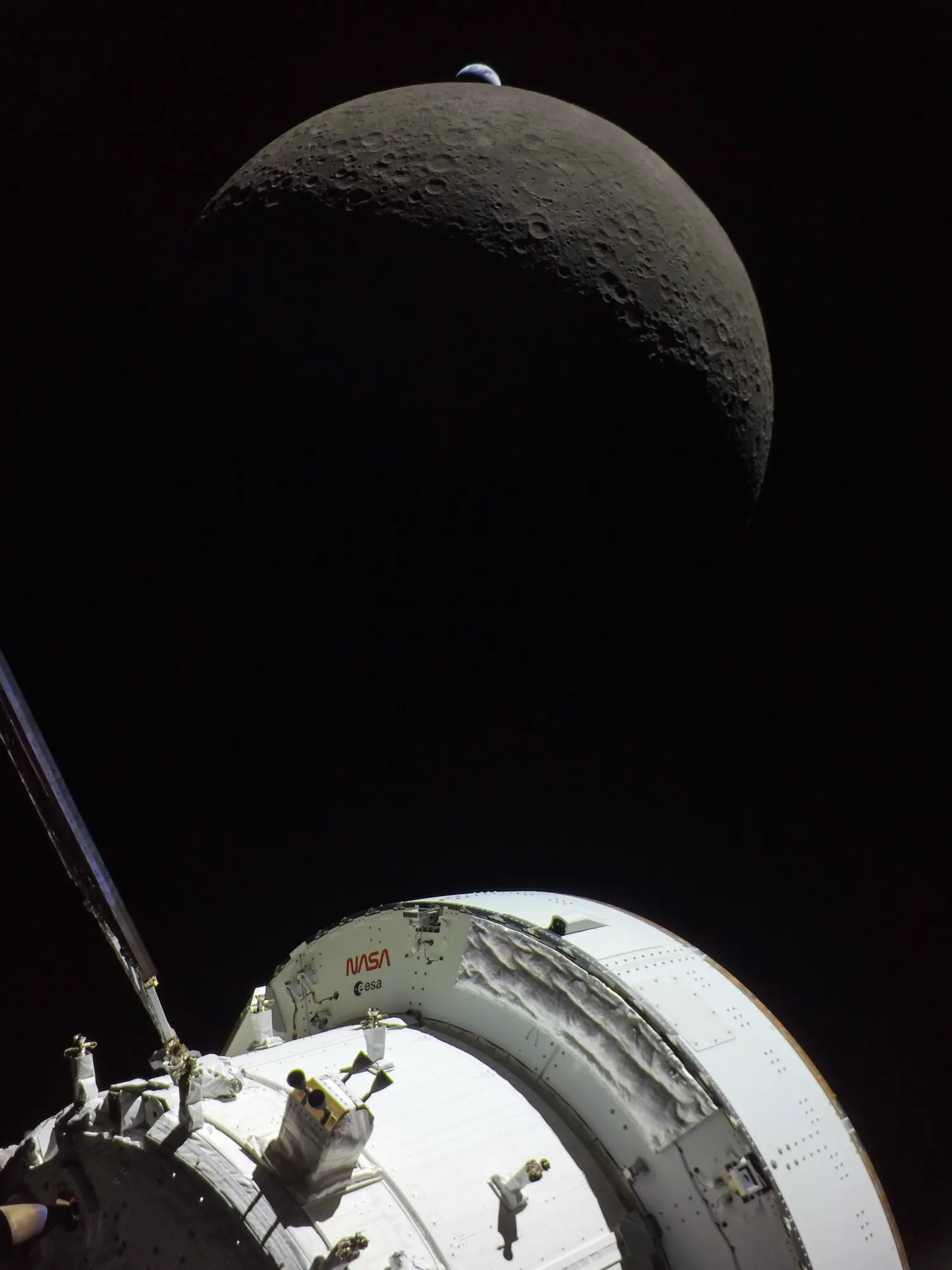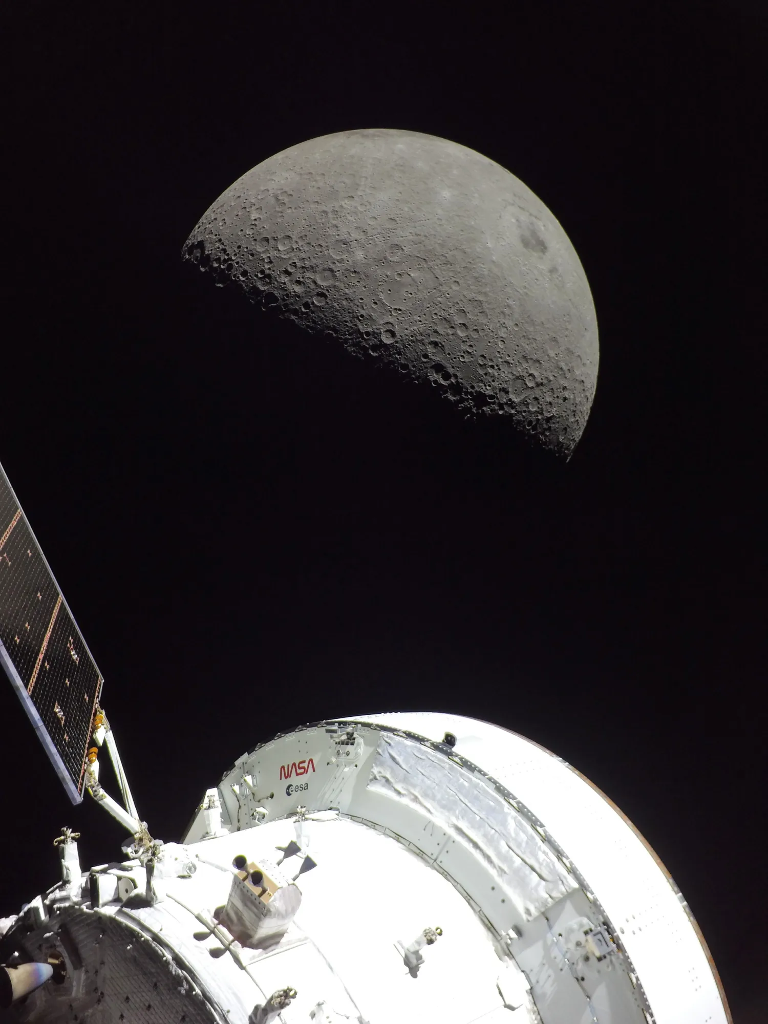 Сейчас корабль уже возвращается к Земле после облета Луны. На новых снимках астронавтов - лунная поверхность, свет и тени на кратерах, Земля вдалеке и работа экипажа на борту.