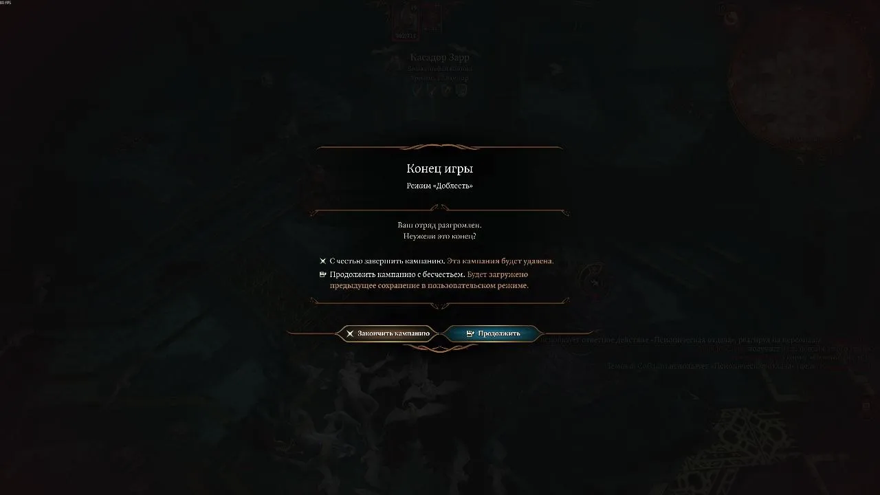 Продолжить меняет сложность на "Тактика", поэтому кампания снова и снова заканчивалась