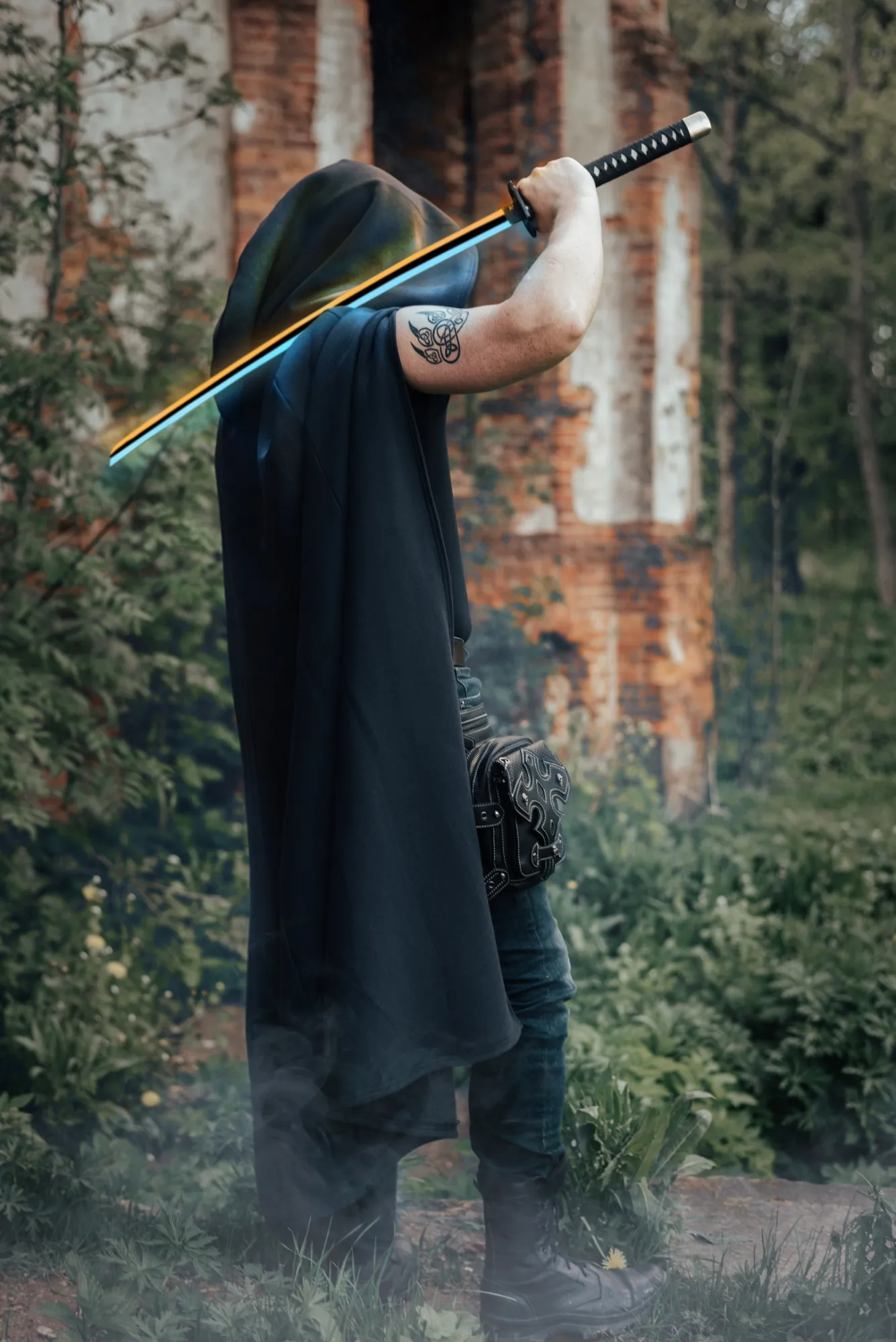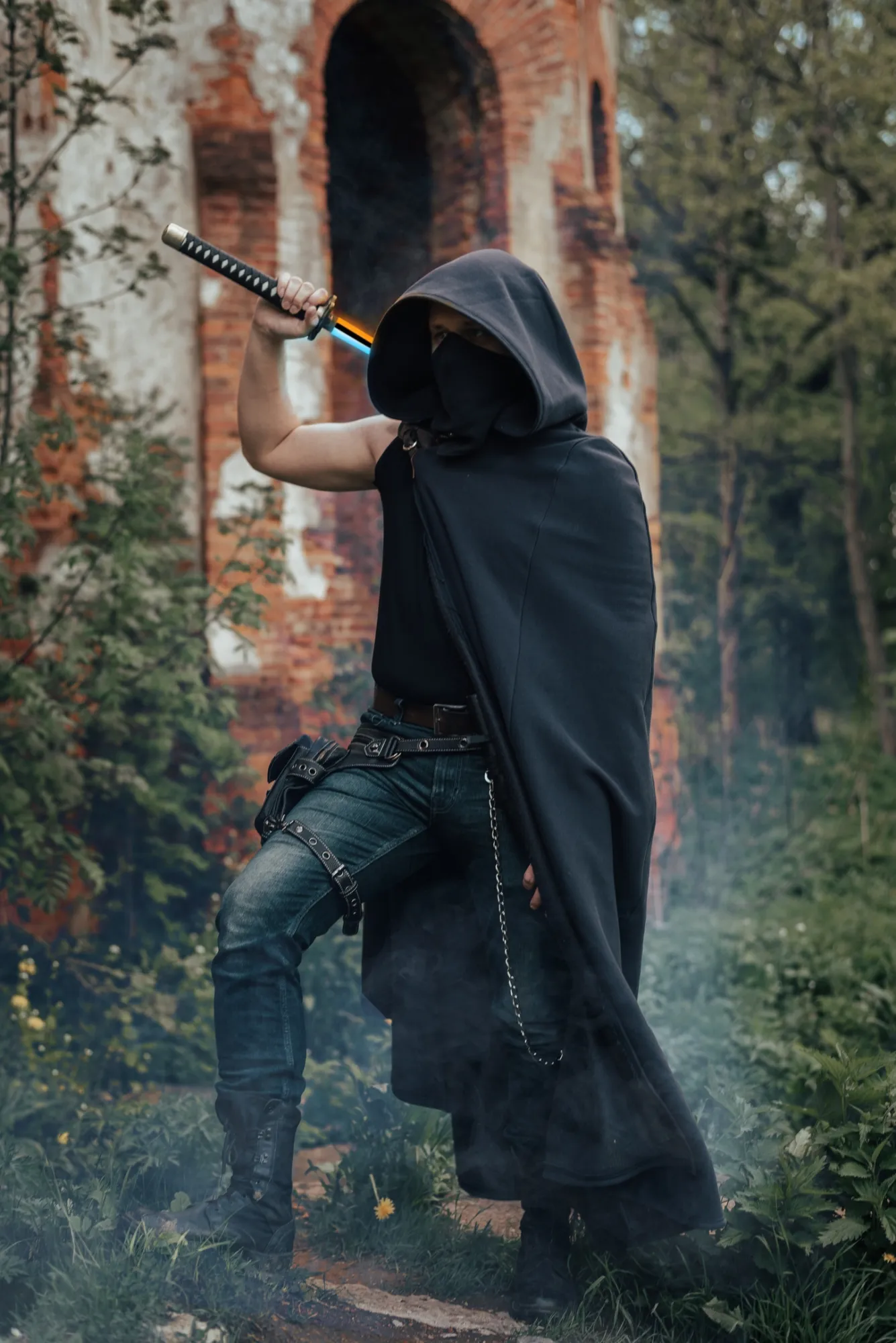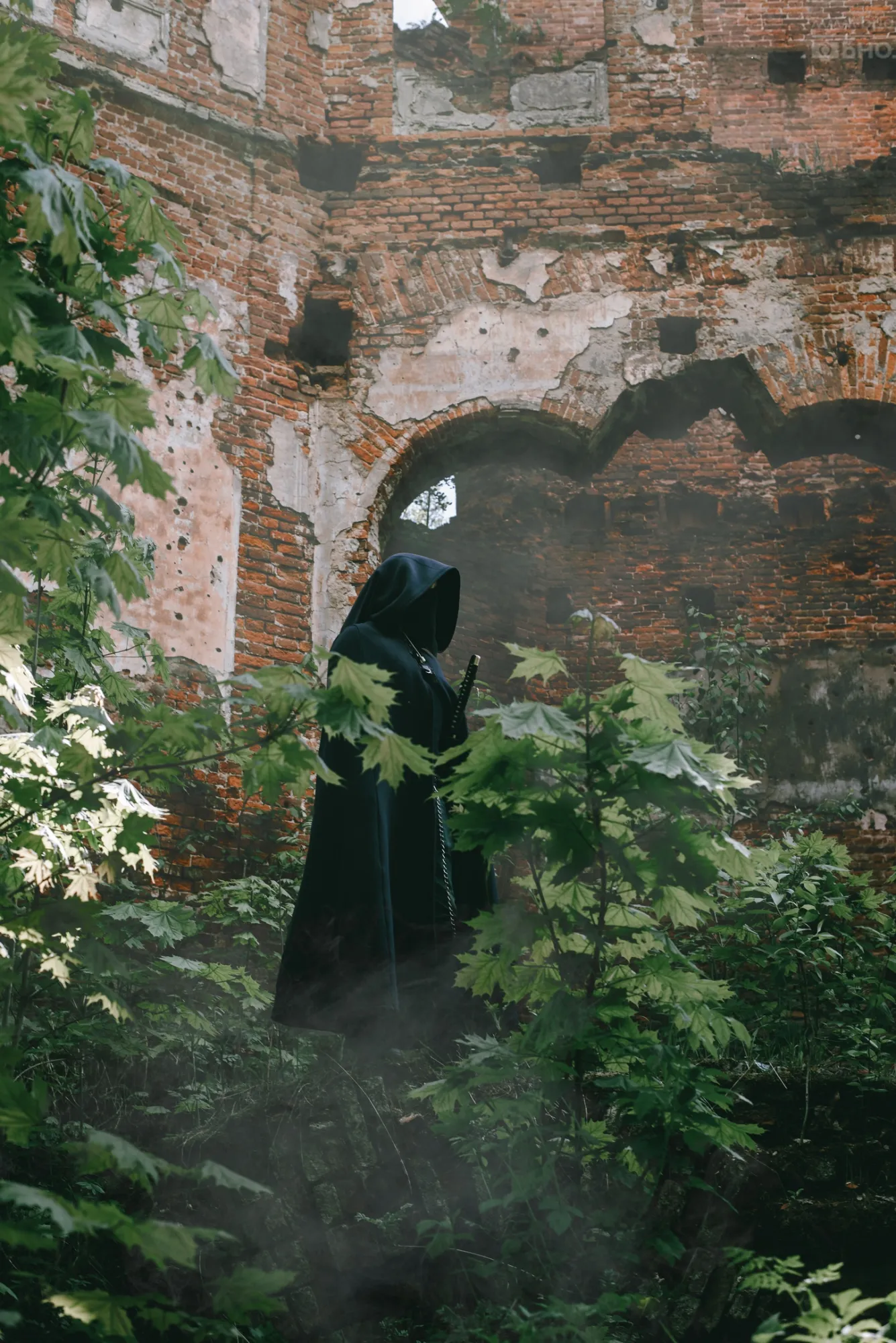 Всё нравится! И плащ и фотографии и локация с развалинами!:) Образ вообще как гондорский разведчик из фильма по ВК, но с катаной! Роскошно!