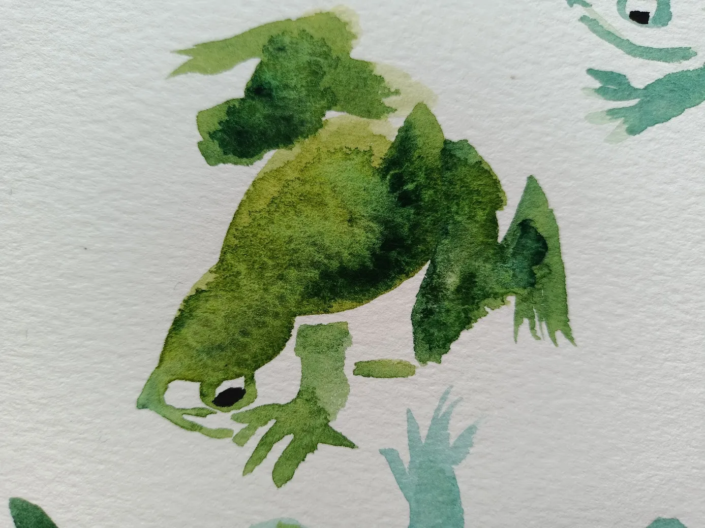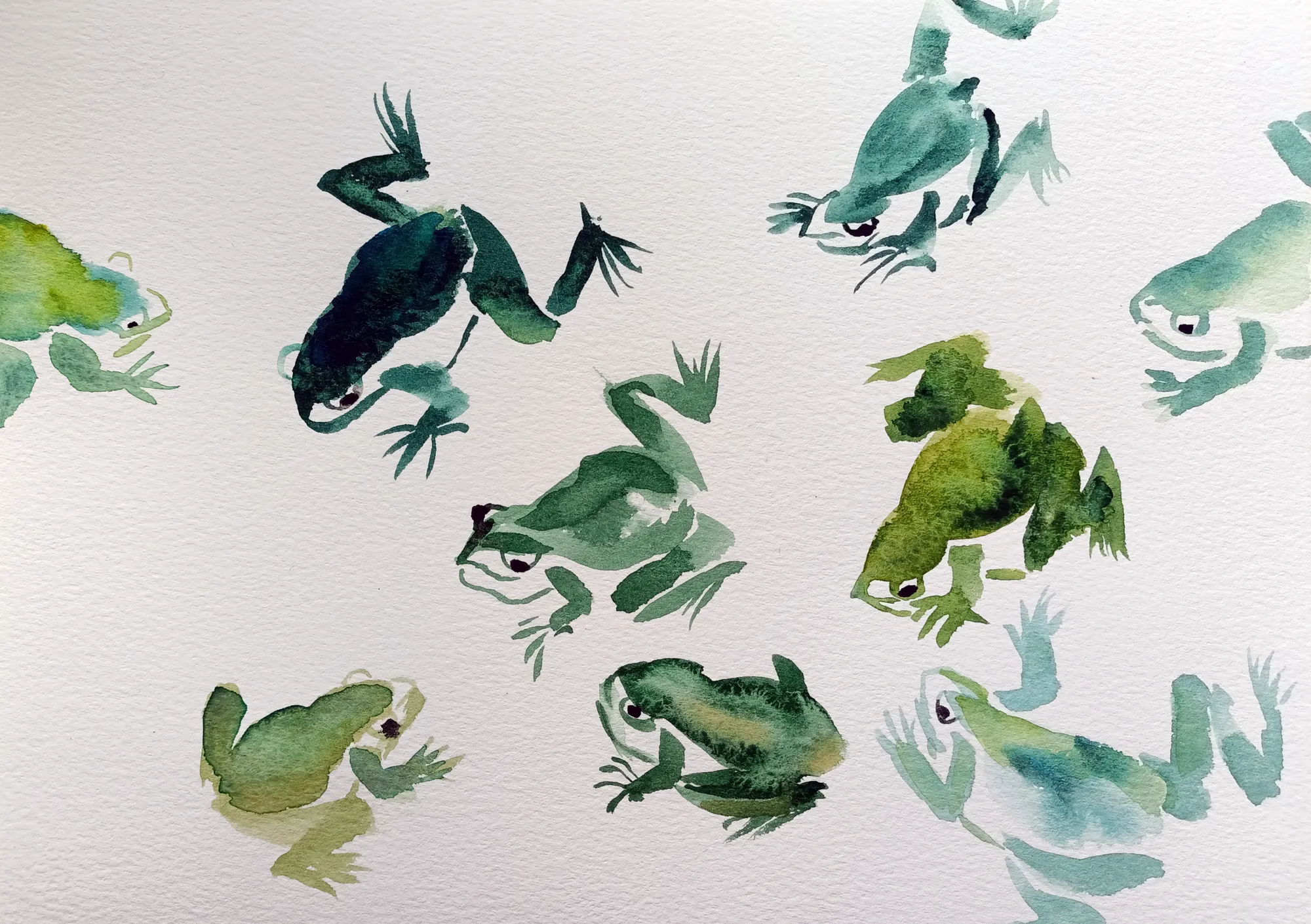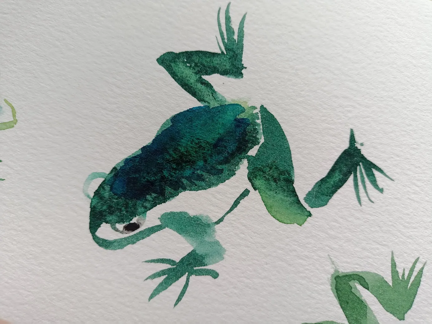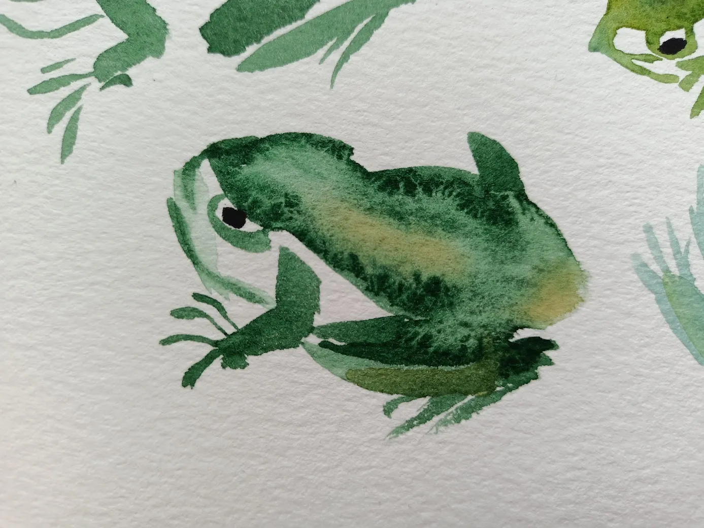 Во-первых, тренируюсь рисовать мазками в стиле японской живописи. Сразу кистью, без наброска. А коль скоро тут такое жабство замутили, тренируюсь не на кошках, как обычно, а на жабах. Это первые жабы.