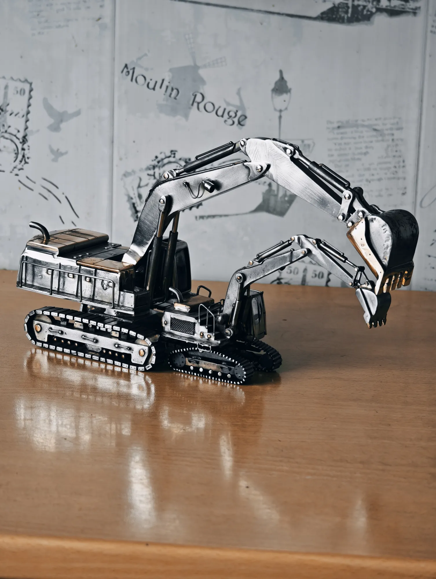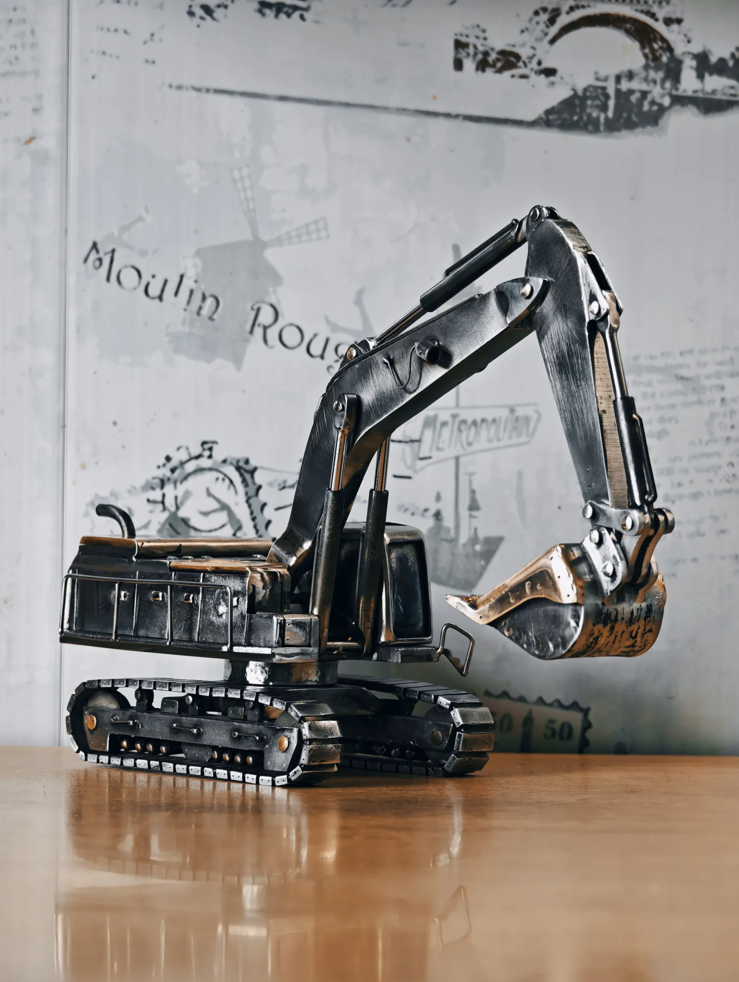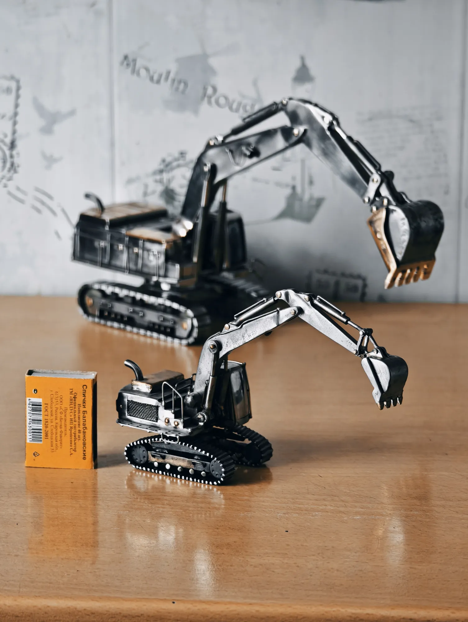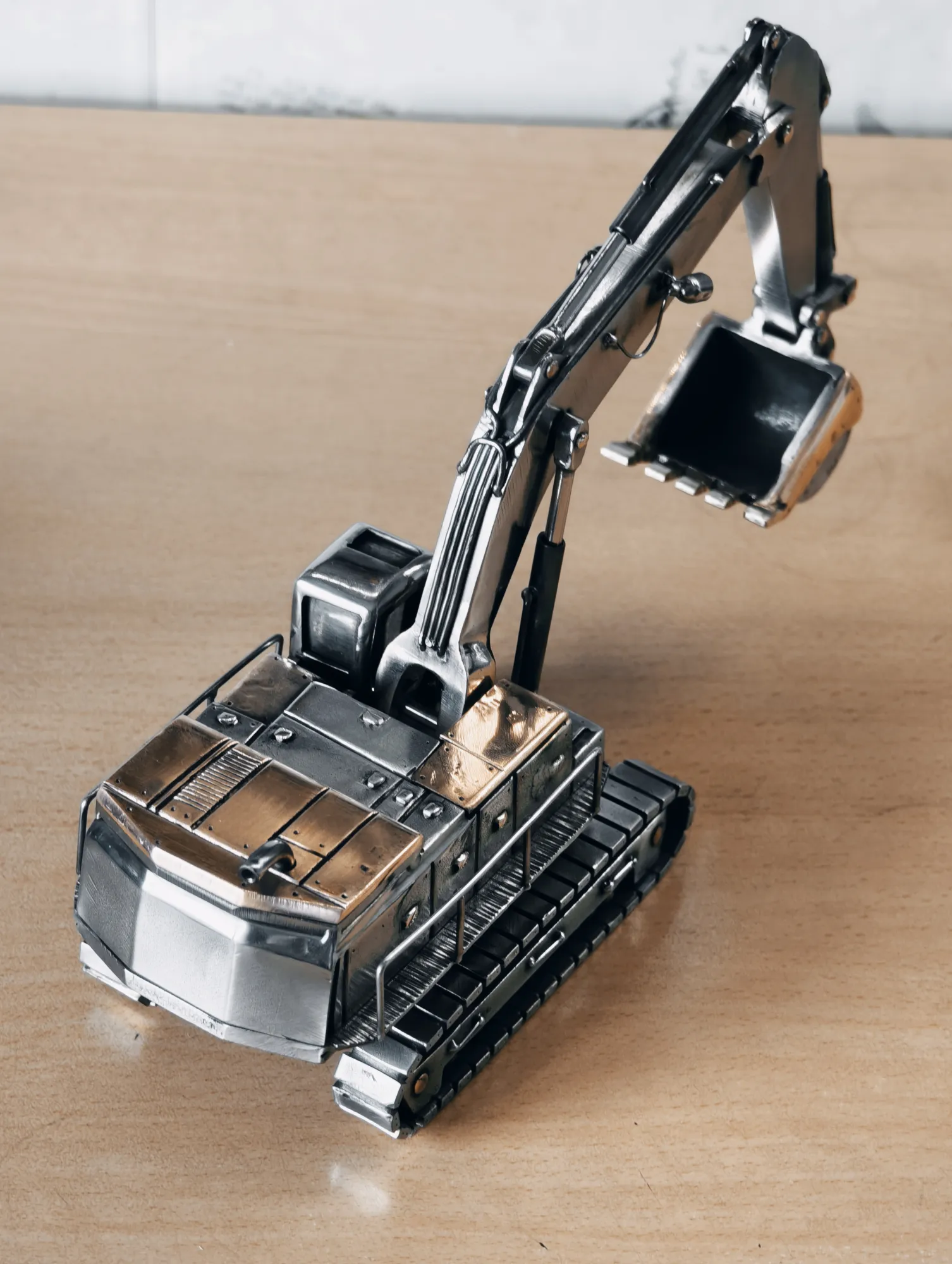 Это новая работа из нержавейки, меди и бронзы. Маленький экскаватор из чернухи и меди. Вес большого 2.2кг. Всё крутится и шевелить)