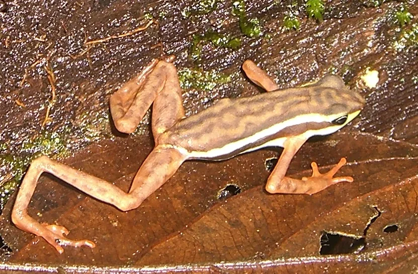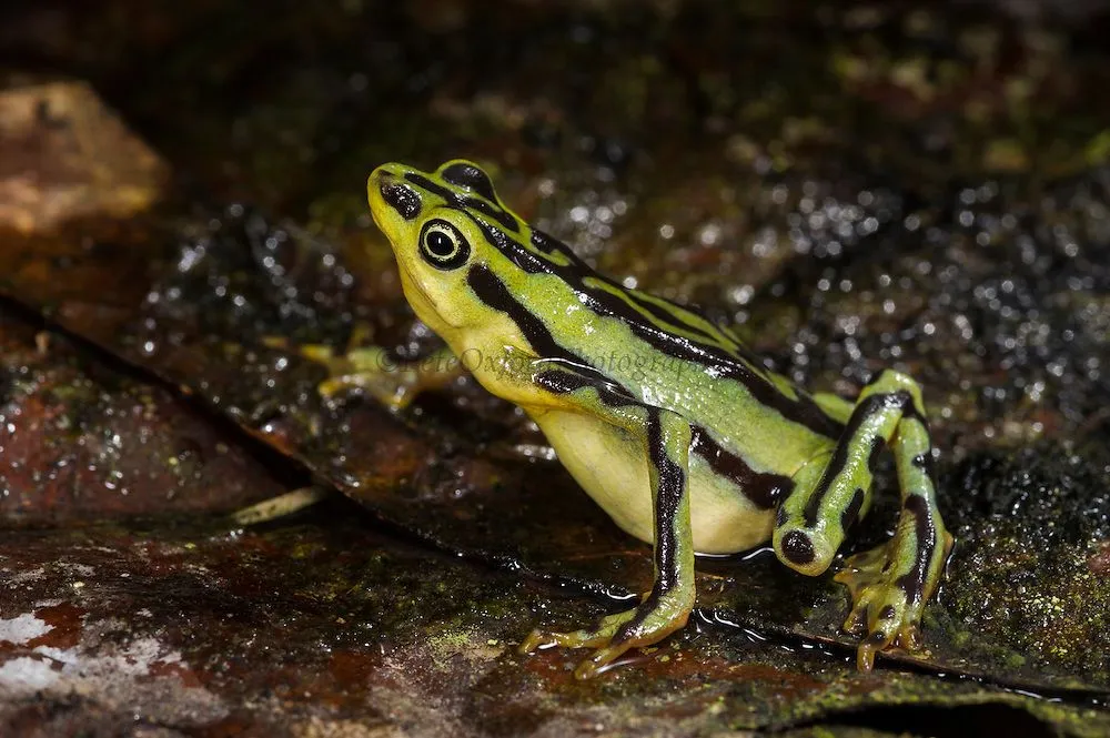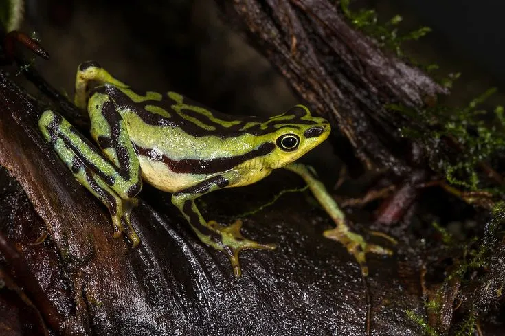 Жаба действительно элегантная! Вы только посмотрите на эту длинноногую полосатую красотку. Она принадлежит к роду арлекинов, которых на латыни называют ателопами. Вид проживает во влажных дождевых лесах на территории Эквадора и, к сожалению, находится под угрозой исчезновения из-за потери среды обитания. Но не грустите слишком сильно, потому что для сохранения вида была создана колония в неволе.