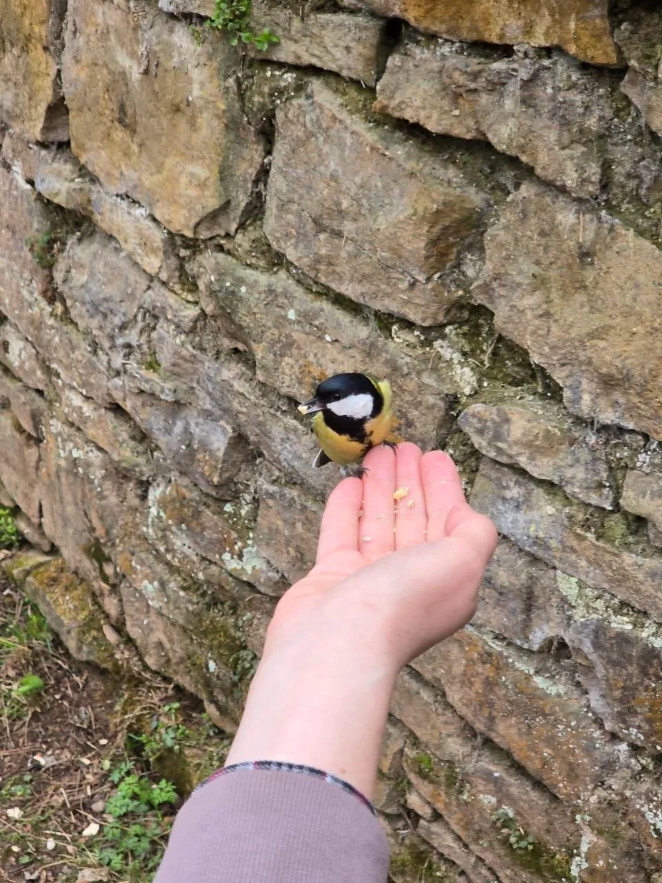 А вот это другая синичка, маленькая. Такие более храбрые, их больше садилось чем обычных жёлтеньких
