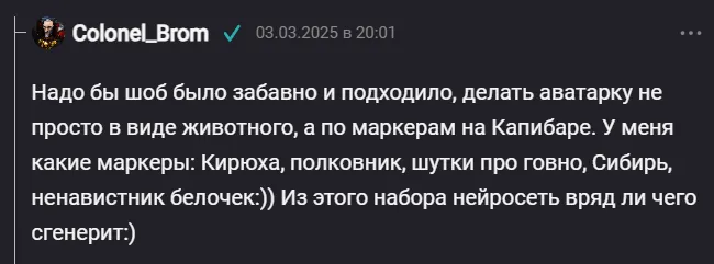Где-то в той же ветке мне кто-то из капибояр, кто с нейросеткой дружил, делал аватарки. Я сохранил:)