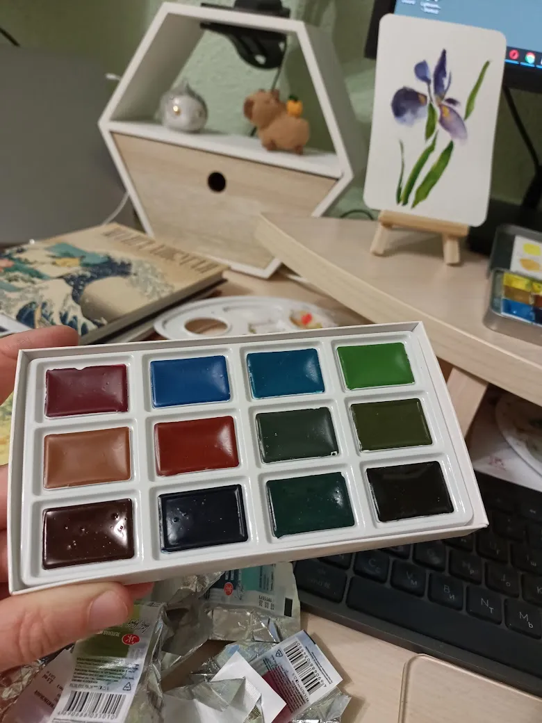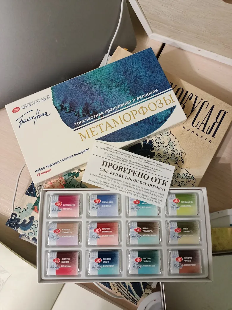 Кстати краски в коробке как конфетки, каждая завёрнута в свою бумажку: