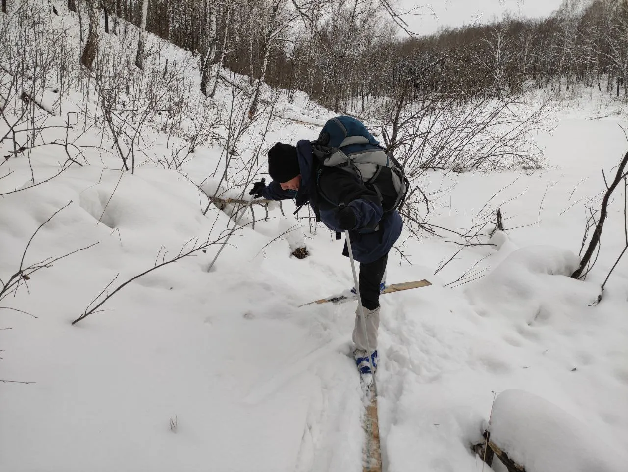 Теперь по технологии: на лесных лыжах поверх ботинок надев...