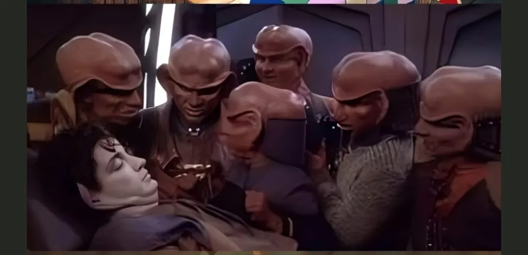А ведь в версии Звездного пути ференги (мелкие ушастые жадные уродцы) стояли вокруг трупа чувака, которого они случайно и грохнули. Вообще приколтная серия, в ней еще Игги Поп снялся