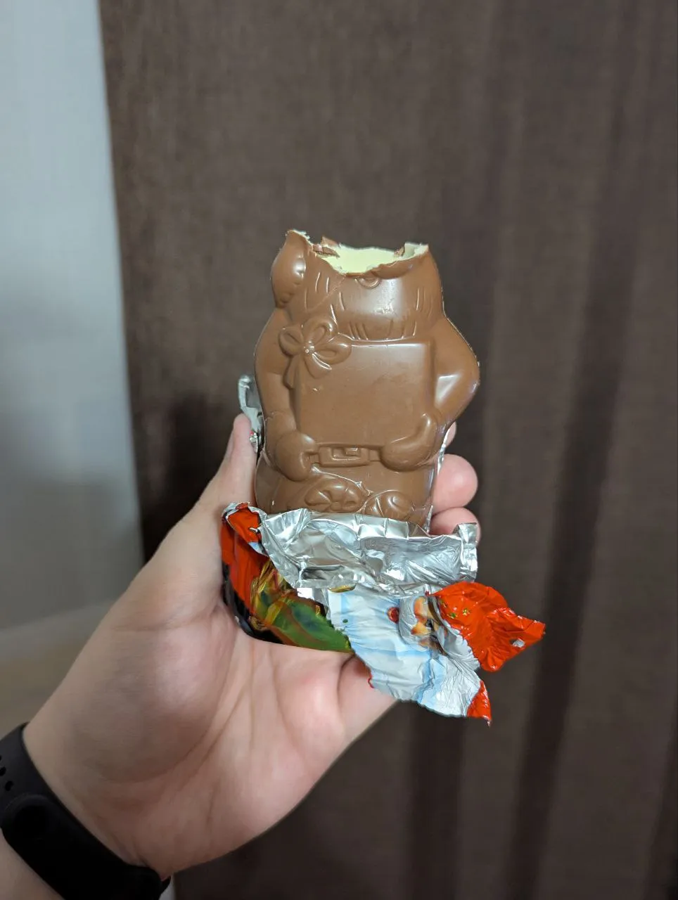 Обожаю откусывать головы у шоколадных фигурок. Но в этом году какой-то квест был найти Киндер или Милку.