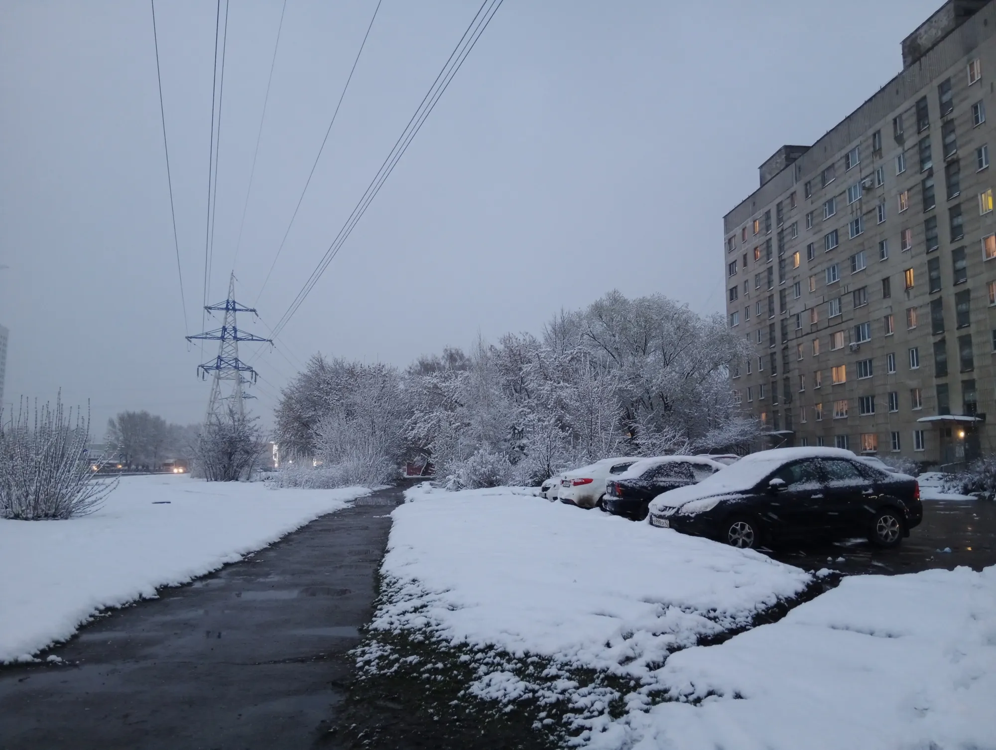 Нам обещали-обещали, но туча со снегом пока мимо нас прошла. А вот температура тогось, холодно.