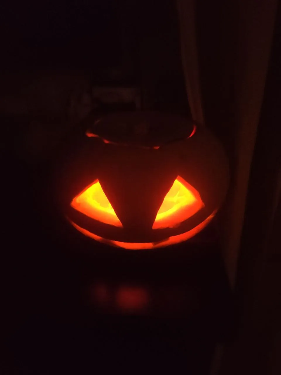 Мы сегодня думали пару вырезать, но маленькая тыква решила заранее начать отмечать