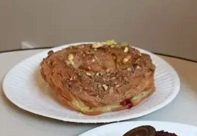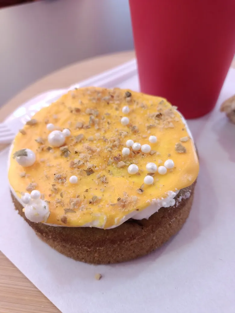Да, это колечко как заварное, только не с творогом, а с фисташкой и малиной. Муж себе брал, я не пробовала. Очень не люблю заварное тесто (а соответственно эти колечки и эклеры вместе с ними)