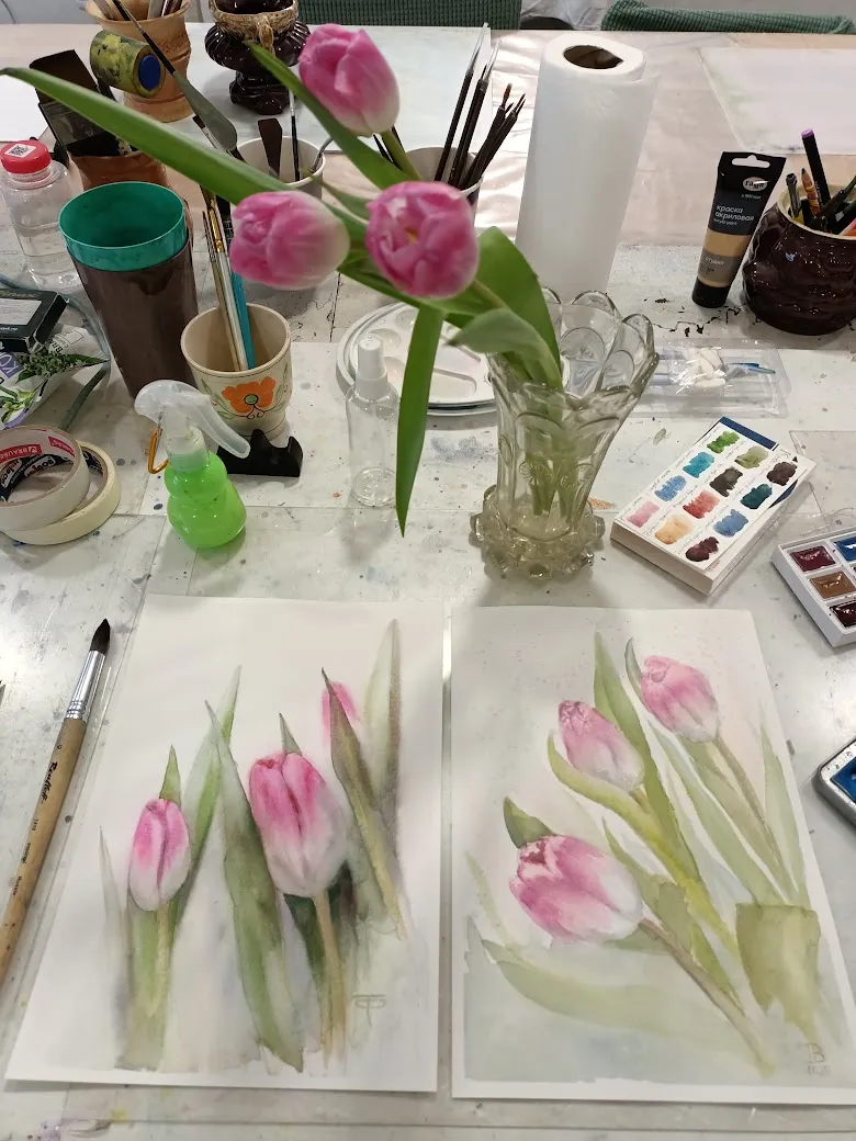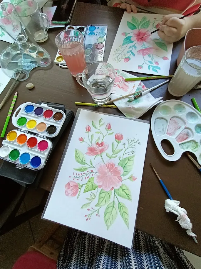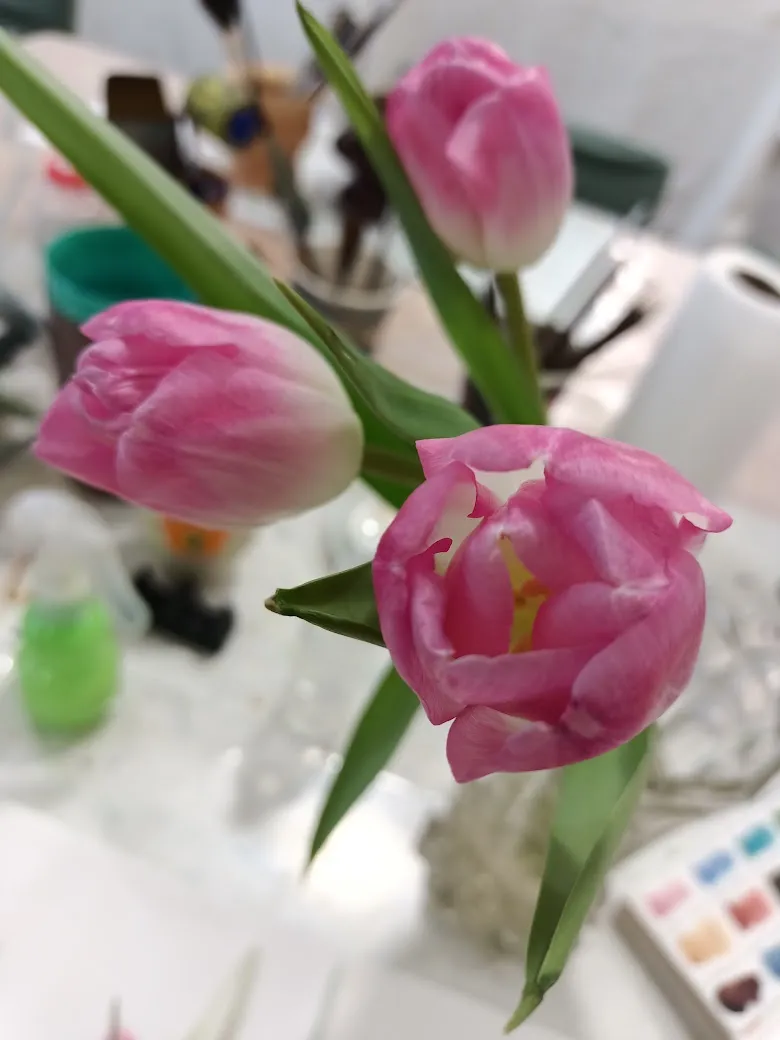 А ещё зырьте чё мне гугл-фото показали с пометкой "год назад": это я на развлекательном мастер-классе рисую детскими красками и кисточками на туалетной бумаге непонятные розовые цветочки :)