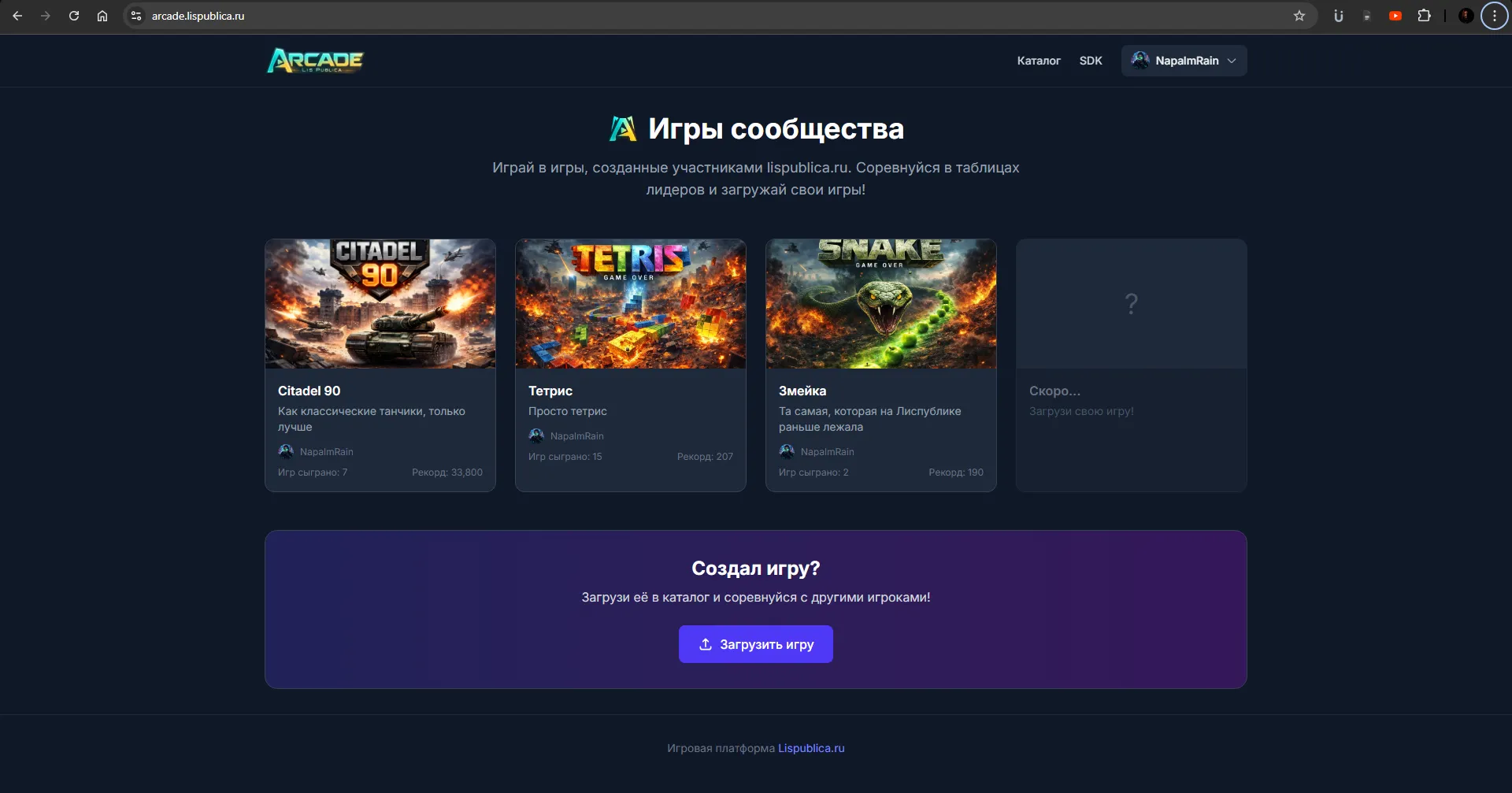 Прошлой ночью мы накатили обновление на Лиспублику, о нём вы можете прочитать в официальном посте, но там не было рассказано маааа-а-а-аленькое обновленьице. А дело всё в том, что мы запустили на базе Лиспублики игровую платформу. Называется она Лиспублика-Аркады.
