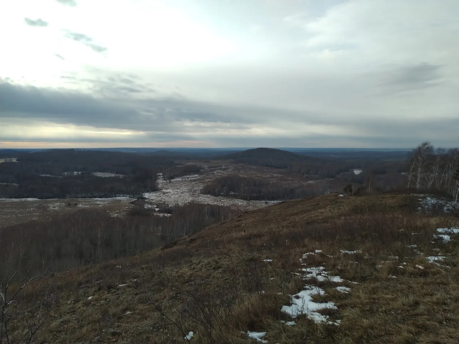 Вид куда-то на юго-запад с сопки Лысая 10.04.2022: