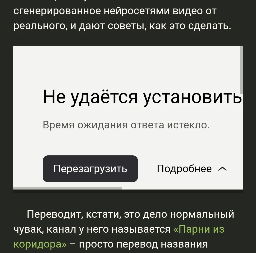 Видео не отображается. Это ютьюб? Мне тут мама прислала ии-шного танцующего А.Фета с его "Я пришёл к тебе с приветом" и говорит, смотри как здорово мужчина танцует и поёт. Пыталась объяснить, что это ии, но кажется, она все равно не поняла.