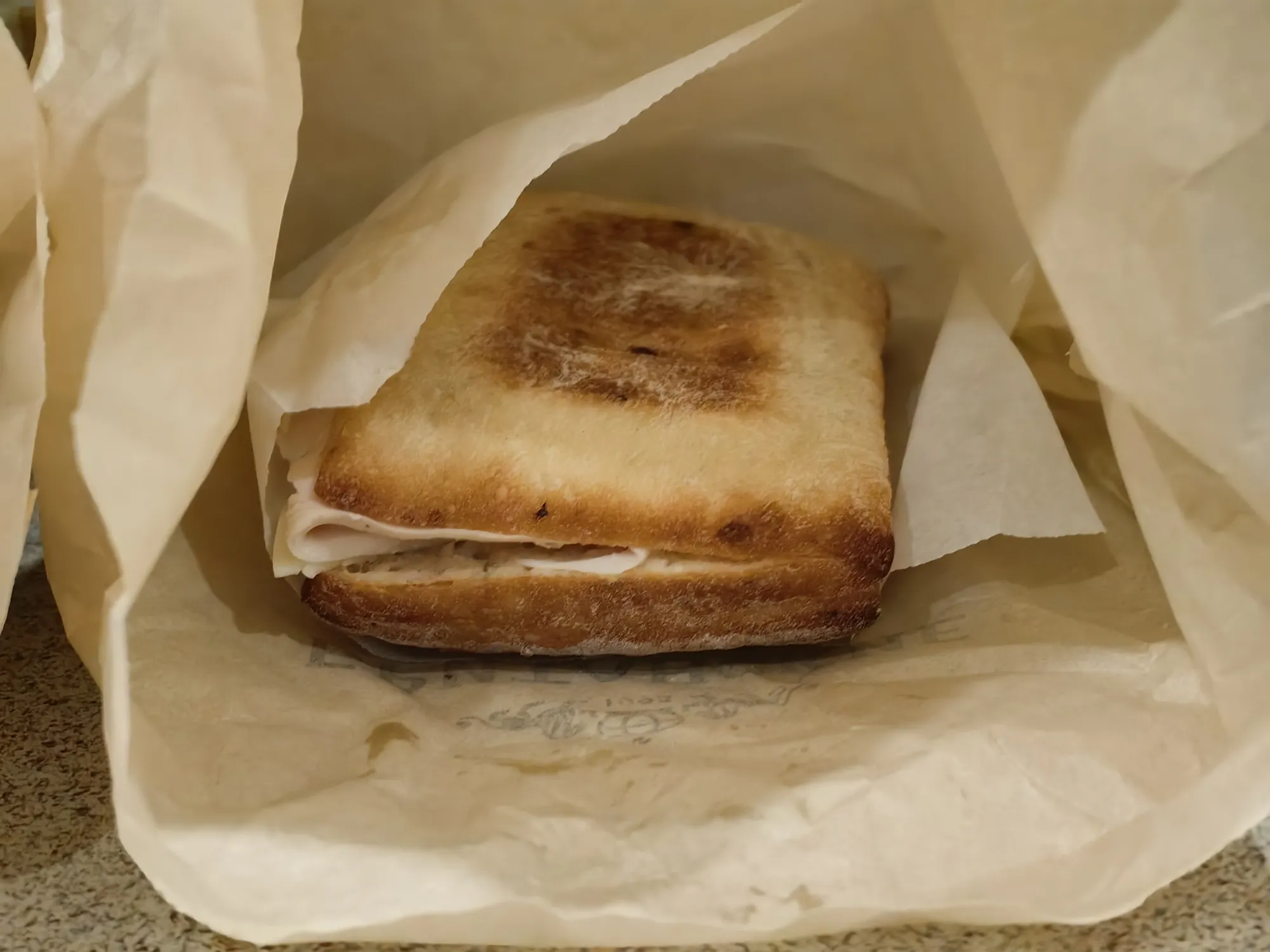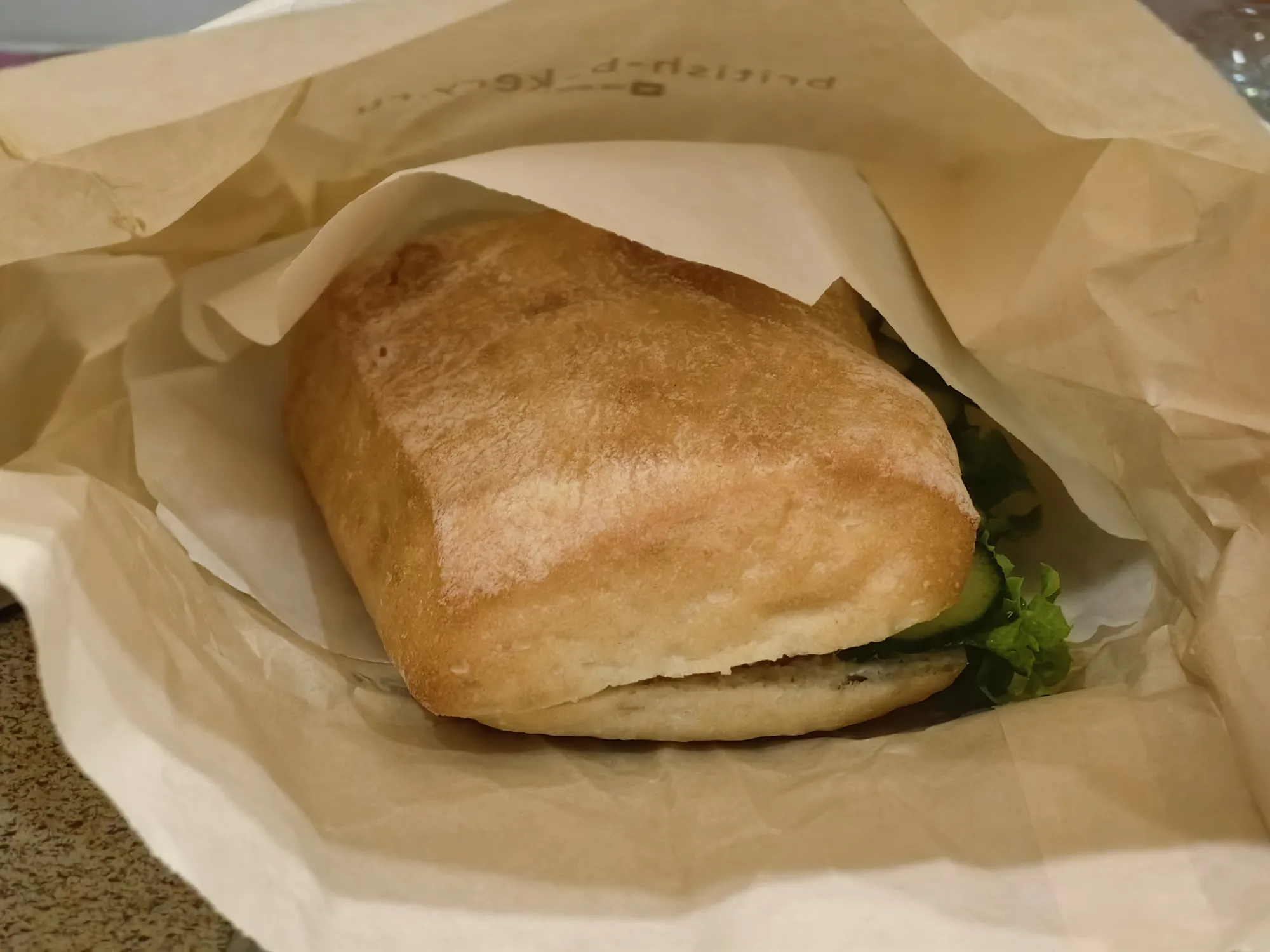 А я её уже съел. То ли курица, то ли индейка. Ну, третий с лососём, вроде