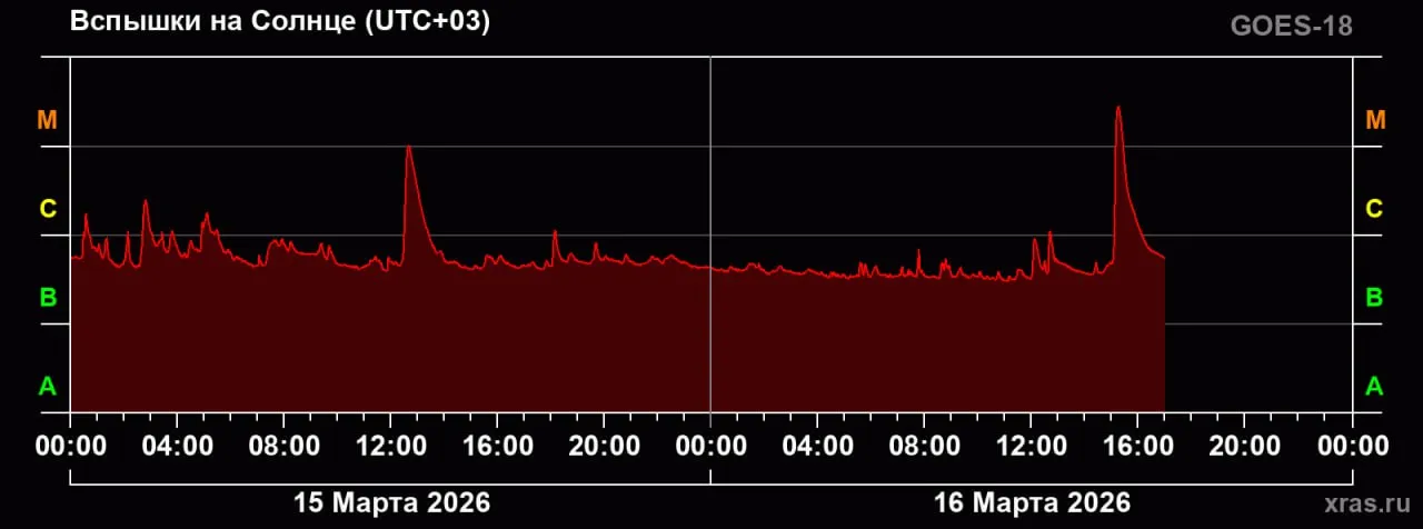 Неожиданно сильная вспышка уровня M2.8 зарегистрирована на Солнце сразу несколькими средствами слежения. Пик события наблюдался вчера в 15:15 по Москве. Взрыв произошел вблизи центра солнечного диска и сопровождался очевидным выбросом плазмы в сторону Земли. По данным с космических телескопов, во время вспышки был также разрушен и выброшен в космос находившийся вблизи эпицентра протуберанец среднего размера, который дополнительно увеличит массу выброшенного газа.