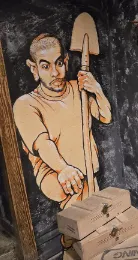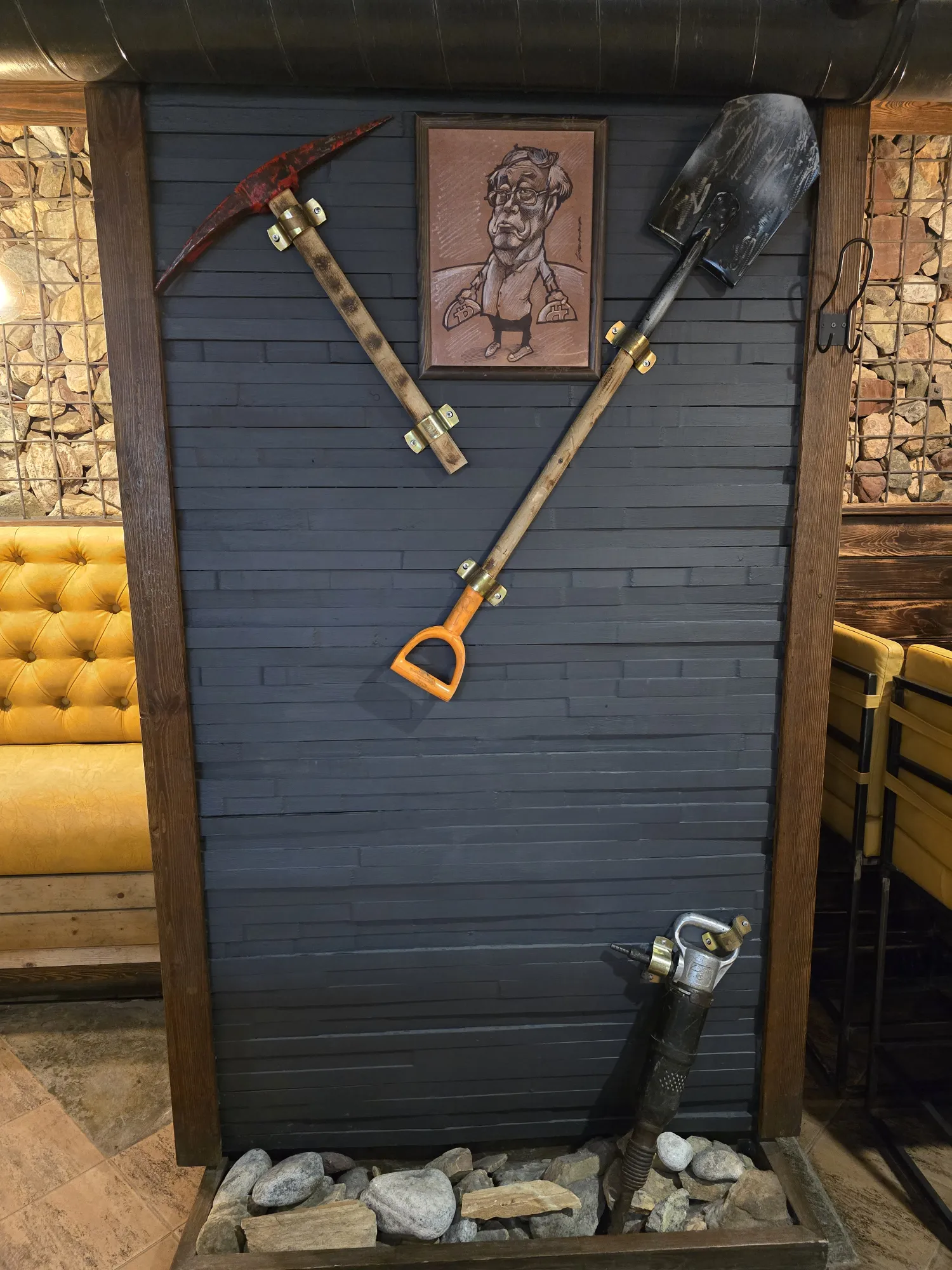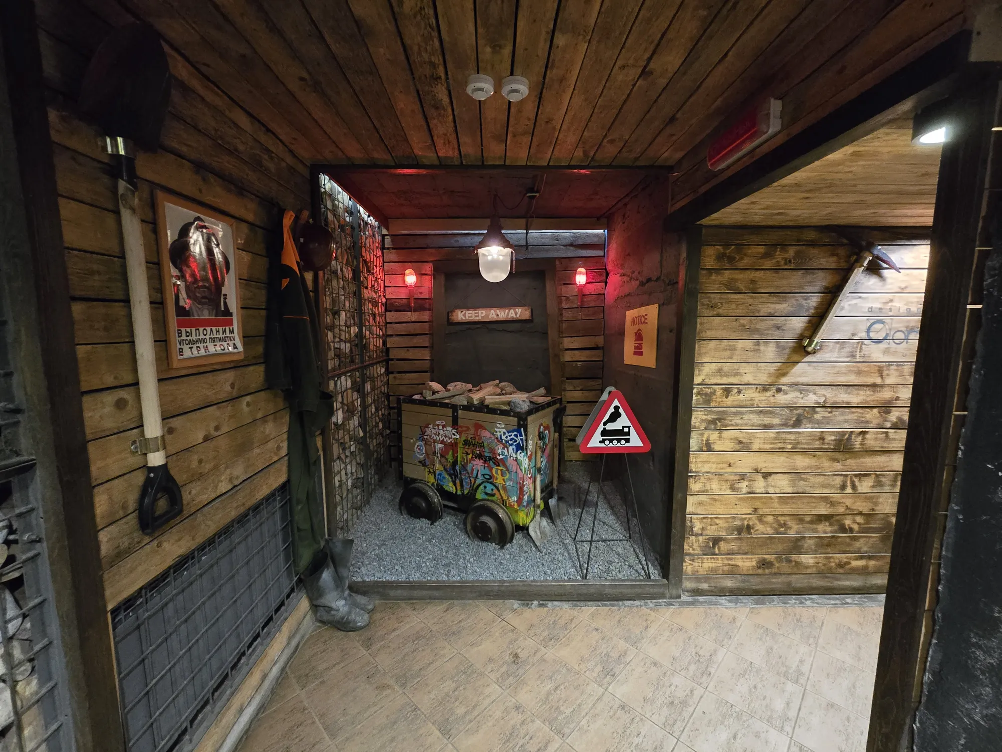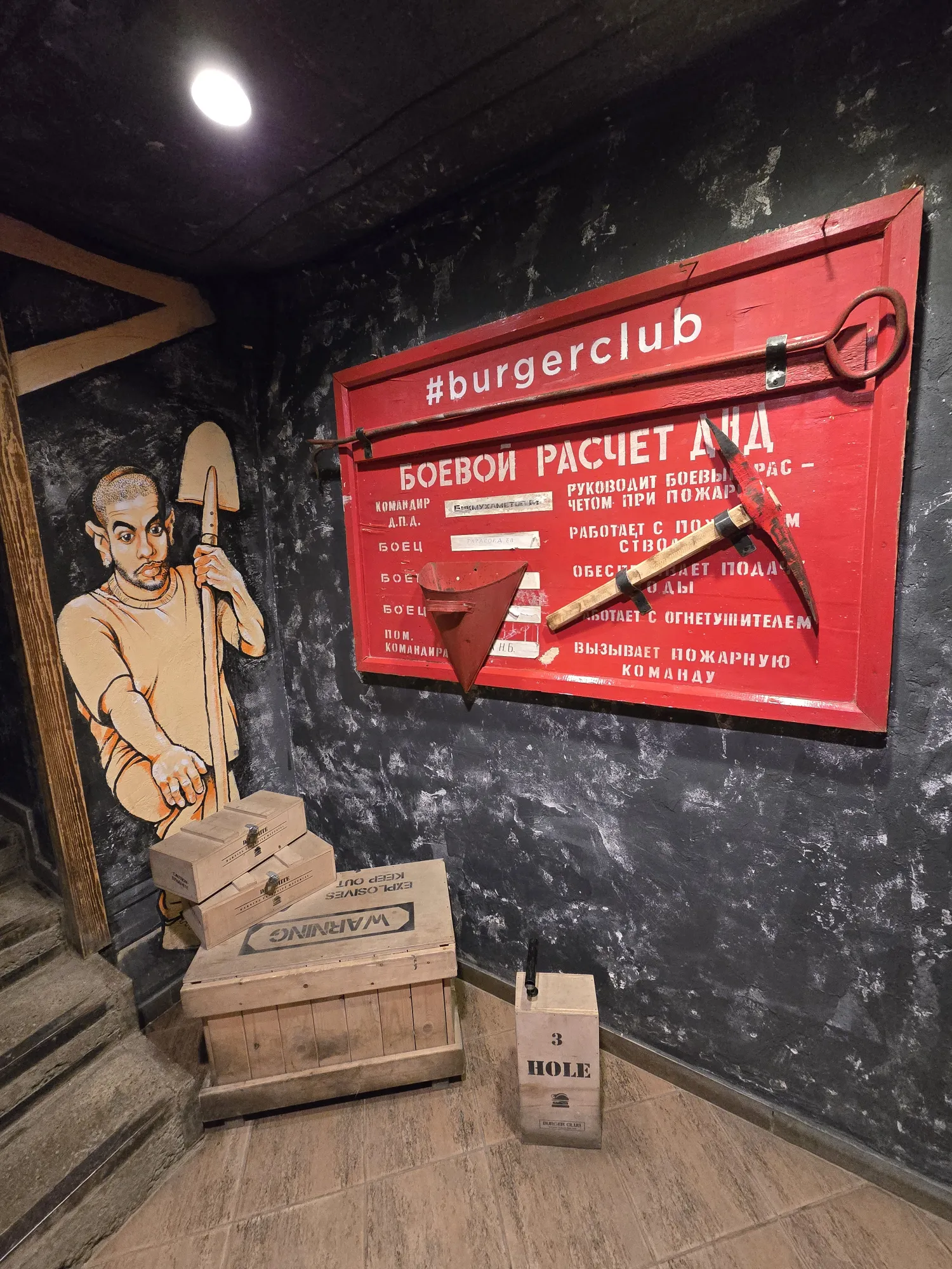 Не стала их фотать. И каски всякие висят, надеть можно. Но где они висели там люди сидели