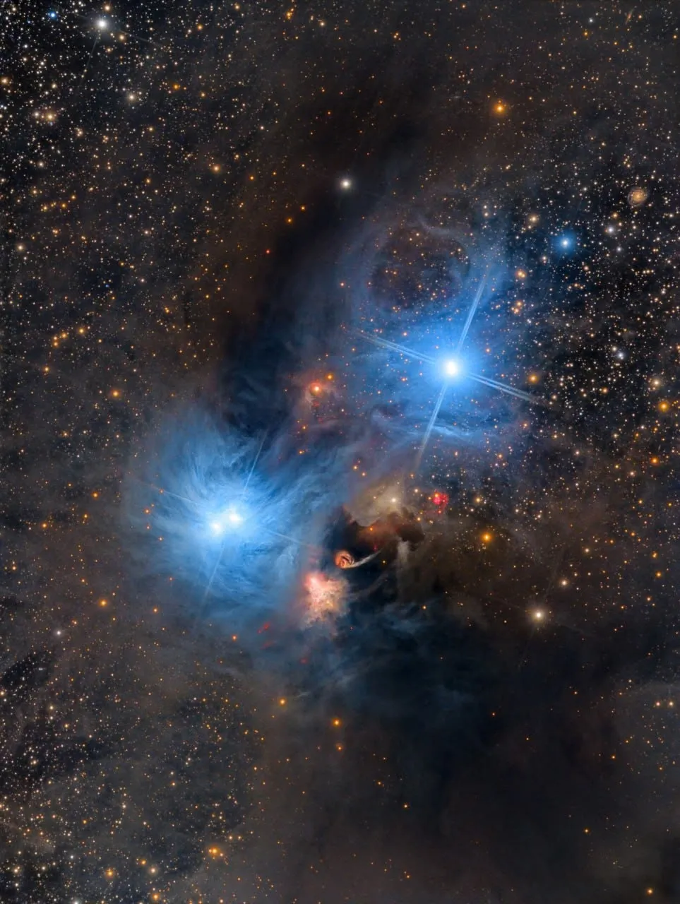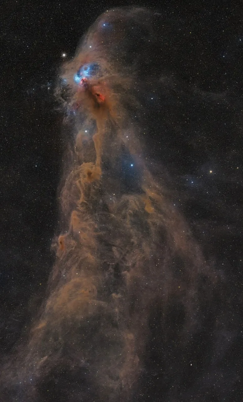 В основном она излучает за счёт того, что межзвёздная пыль отражает и рассеивает свет ближайших ярких звёзд. Расстояние до всего комплекса оценивается в 430 световых лет. Это один из ближайших к нам регионов звёздообразования.