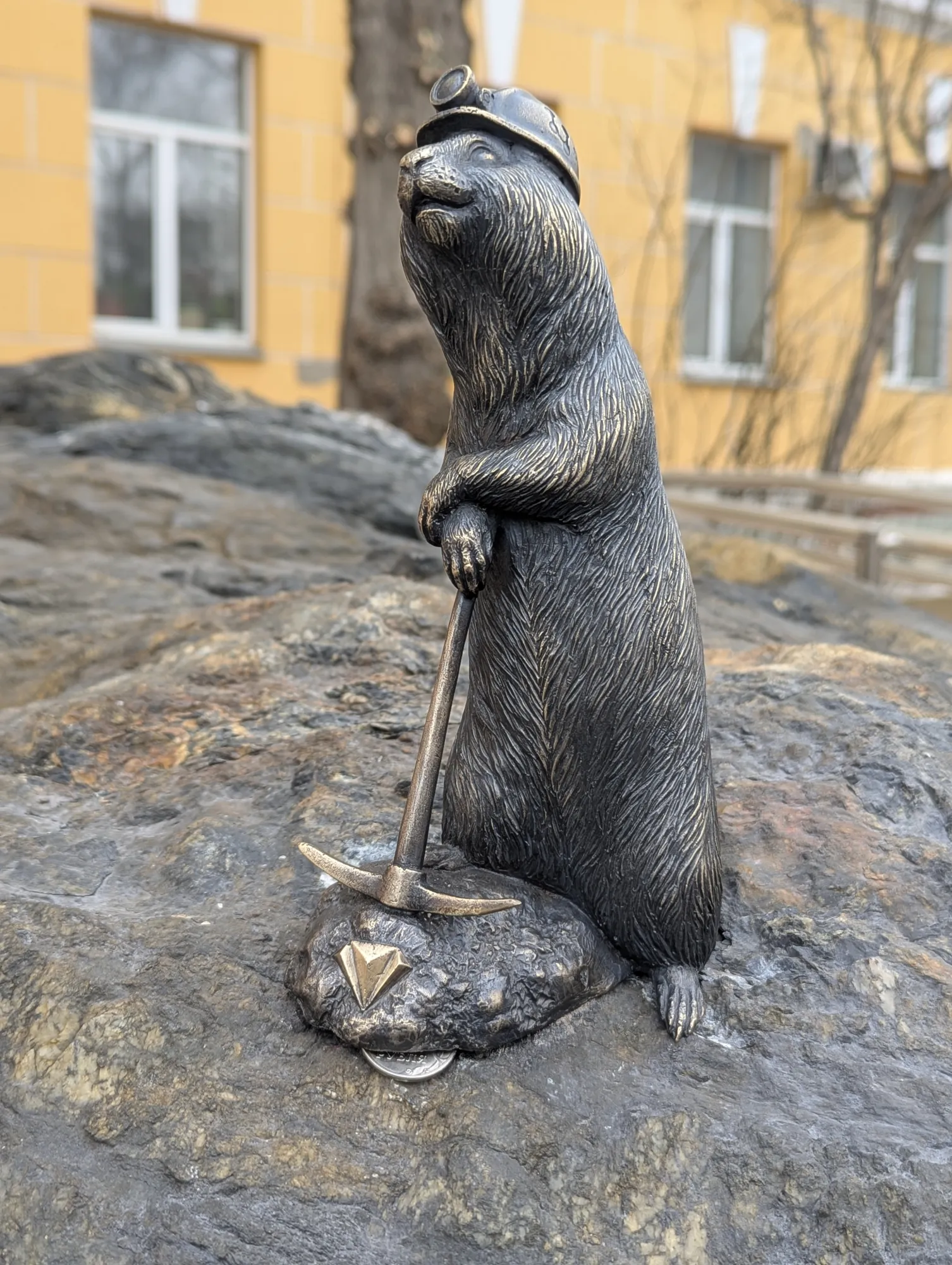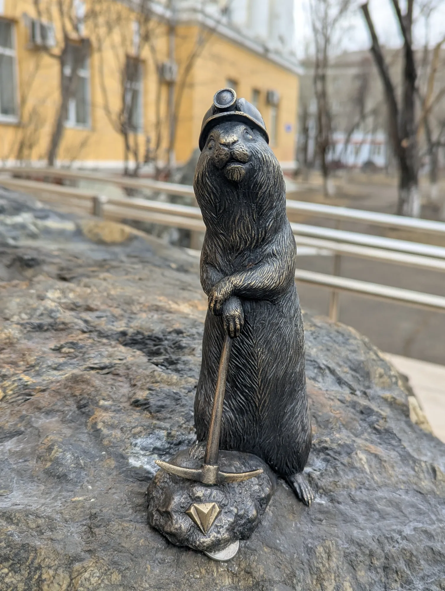 В этот раз бронзовый зверёк появился возле института цветных металлов по инициативе его выпускников. Суслика зовут Гоша (сокращение от «Горное дело» и «Шахтное проектирование»). Так бывшие студенты решили сделать подарок родному вузу и заодно привлечь внимание молодежи к профессии.