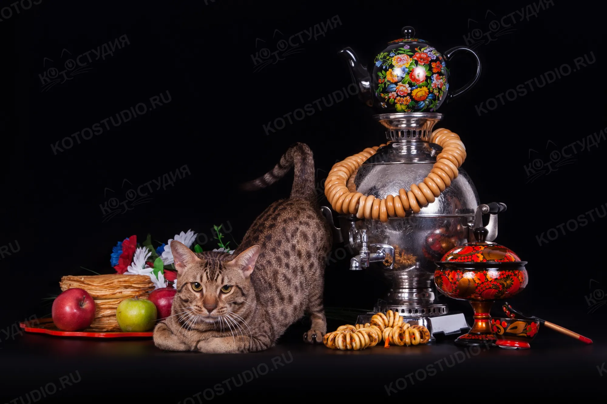 Фото делали много лет назад на выставке кажется в Волгограде, в главной роли - кот породы оцикет, блины пекла его хозяйка, а сожрали потом мы с мужем как главные упахавшиеся во время съёмки. Вы можете сказать, что упахался больше всех кот, но кот так не считает. Он просто получал удовольствие!