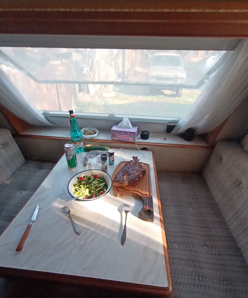 Милое дело расположиться летом в трейлере, накатить и поесть мяса