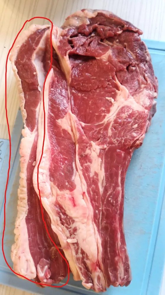 Вообще эта деталь коровы называется антрекот. Слова "рибай" или "мачете" никто из продавцов не знает. У нас продаются по 700 за кг. вместе с костями. Антрекот условно состоит из трёх частей. Г-образная оболочка из кости, которую мы обрезаем. Затем еще один слой, не знаю как называется, тоже обрезаем. Он жесткий