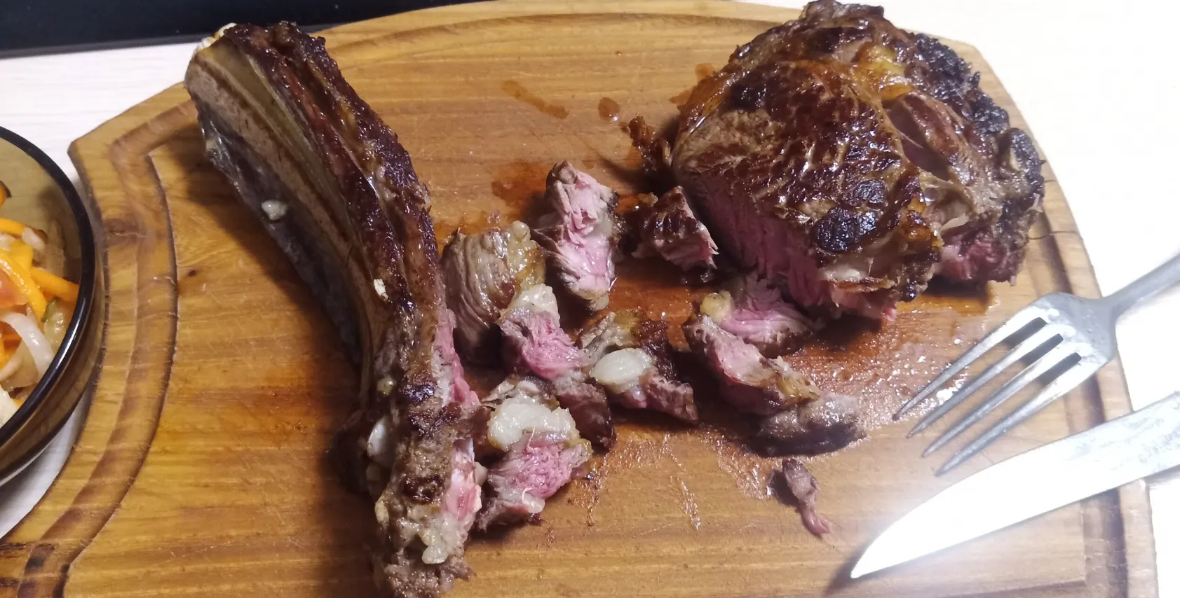 4) Толщина стейка. От этого зависит по сути время готовки. Подходят стейки толщиной от 3 до 6 см. Последние для любителей medium-rare, так как прожарить их тяжело не загубив при этом материал. Меньше 3 см. жарить не рекомендую, т.к. очень тяжело поймать момент когда он будет готов. В 95% случаев он выйдет сухой.