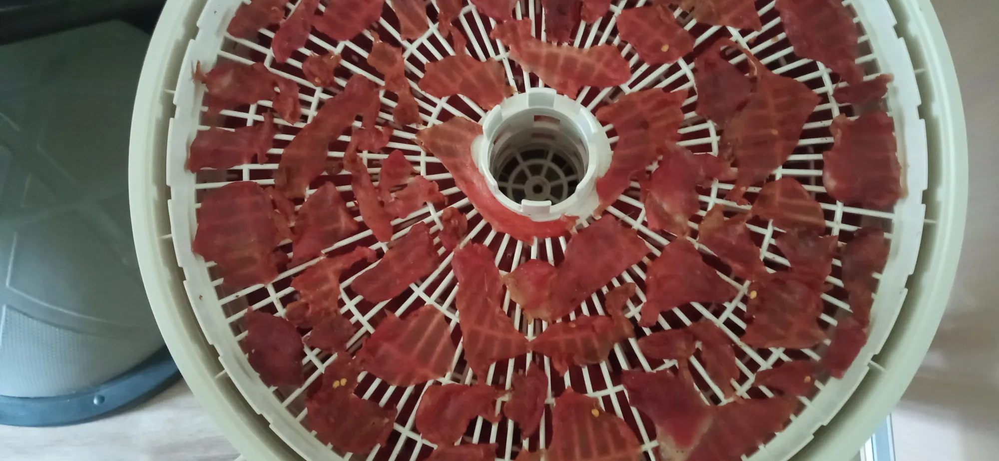 Верно, я меняю. У меня 5 ярусов, но мяса не так много было, 1,4 кг, поместилось на 4 ярусах. А твою сушилку я ж смотрела на капе, фото что ты выкладывал она же тоже многоярусная , или это было фото из интернета?