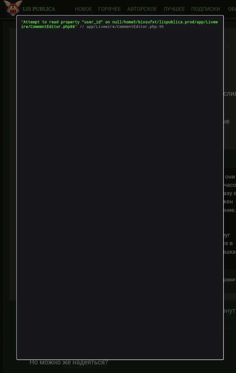 @NapalmRain приветствую, следующая ошибка при посте комментария, коммент не сохраняется и теряется, та же самая при публикации