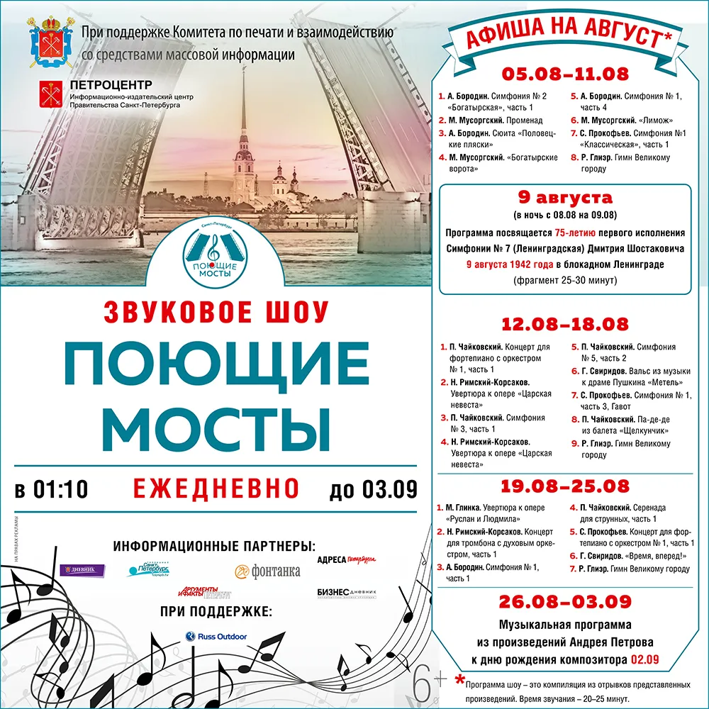 А когда мы поехали на экскурсию то выключили подсветку на дворцовом мосту. Ну специально для нас и флаги сняли в парке трехсотлетия.