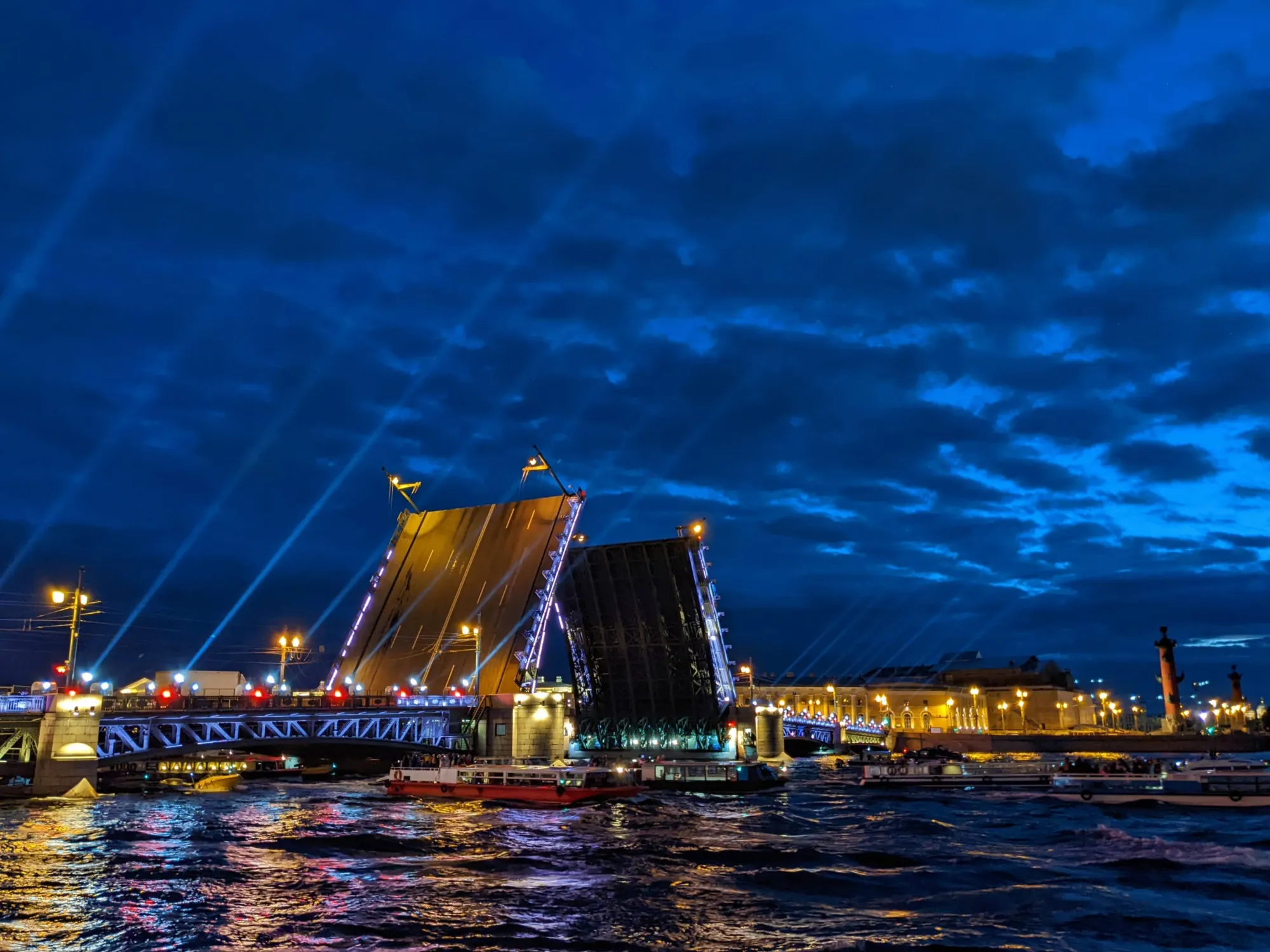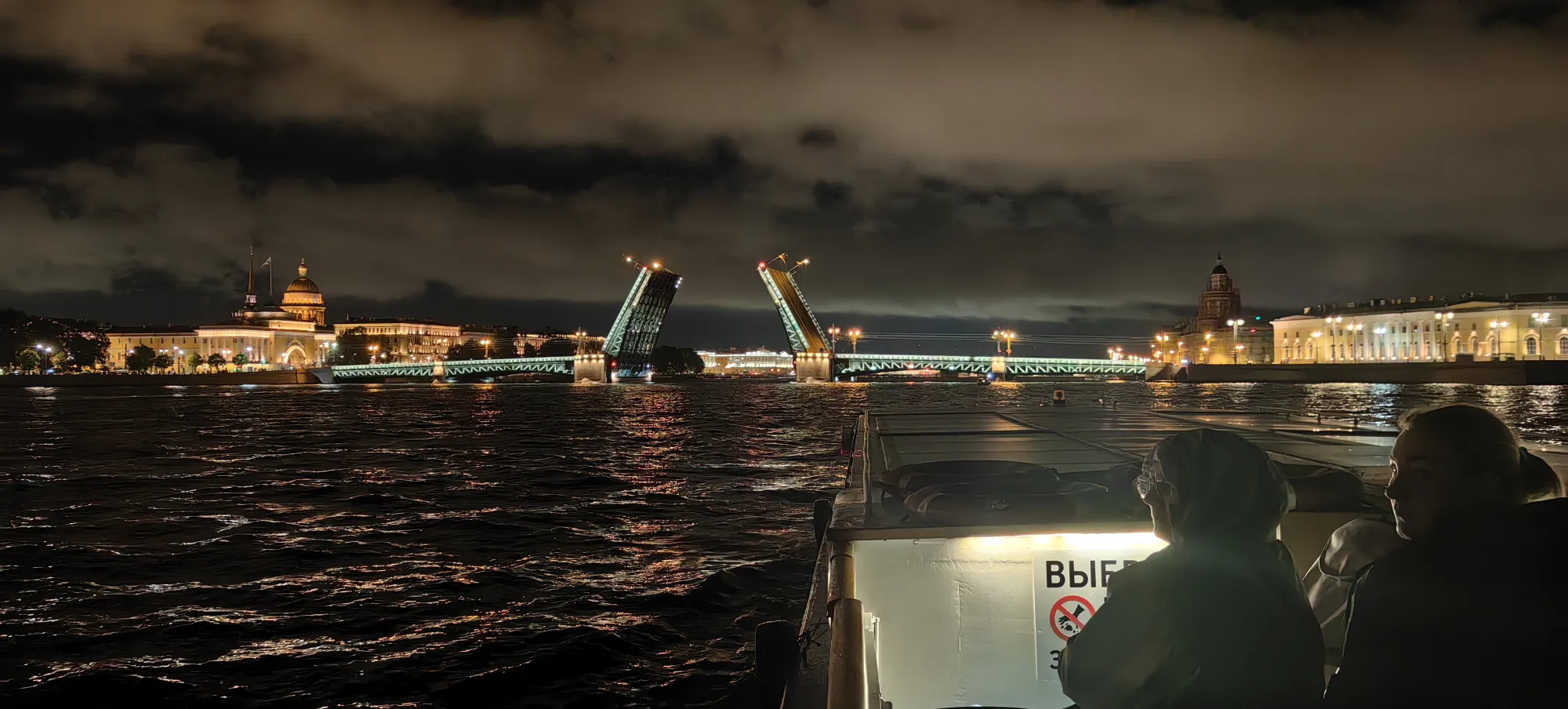 Был я на водной экскурссии на развод мостов. Очень красиво, но страшно )