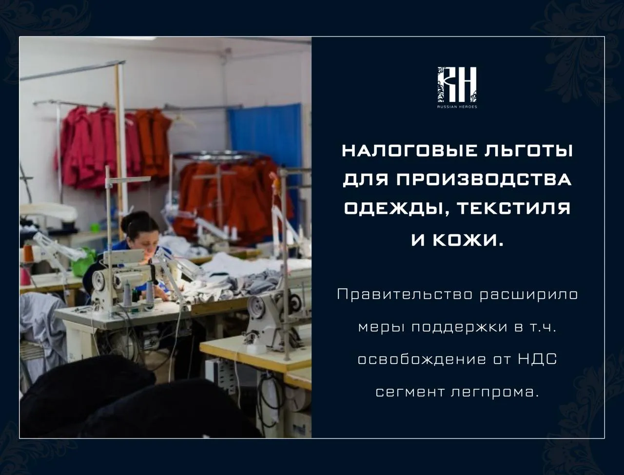 Ну и вот с ходу поделюсь, что легпрому и производителям одежды дали кучу льгот, даже от ндс освободили: