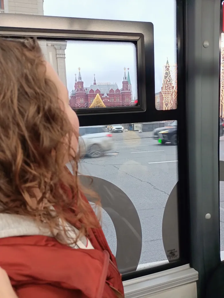 Сели на автобус и поехали в музей. Едем, а из окна автобуса видно Кремль )