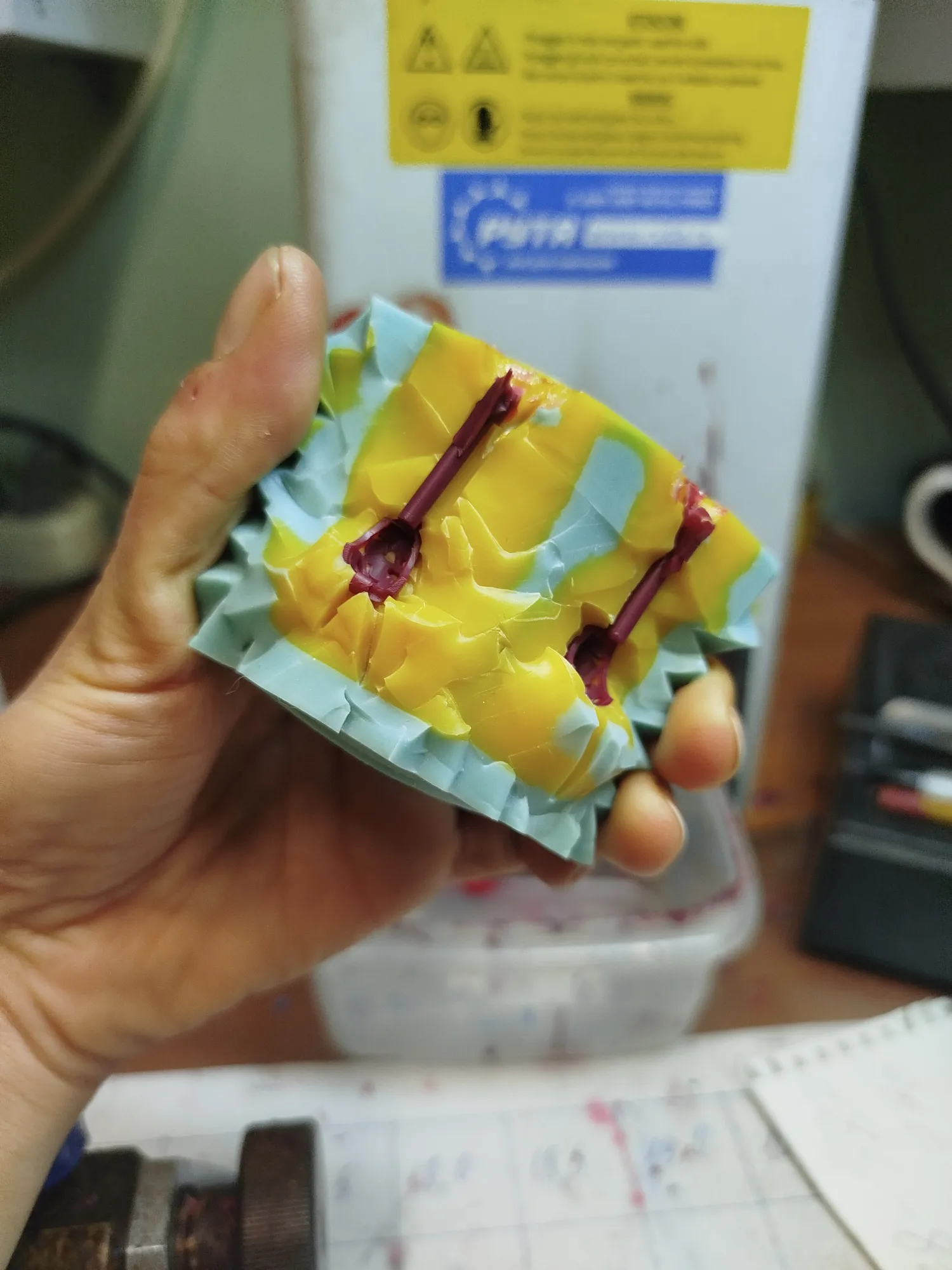Почему я так делаю? Потому что он шикарно проливается в мелкой пластике (это от синего) и достаточно пластичен (это от красного).