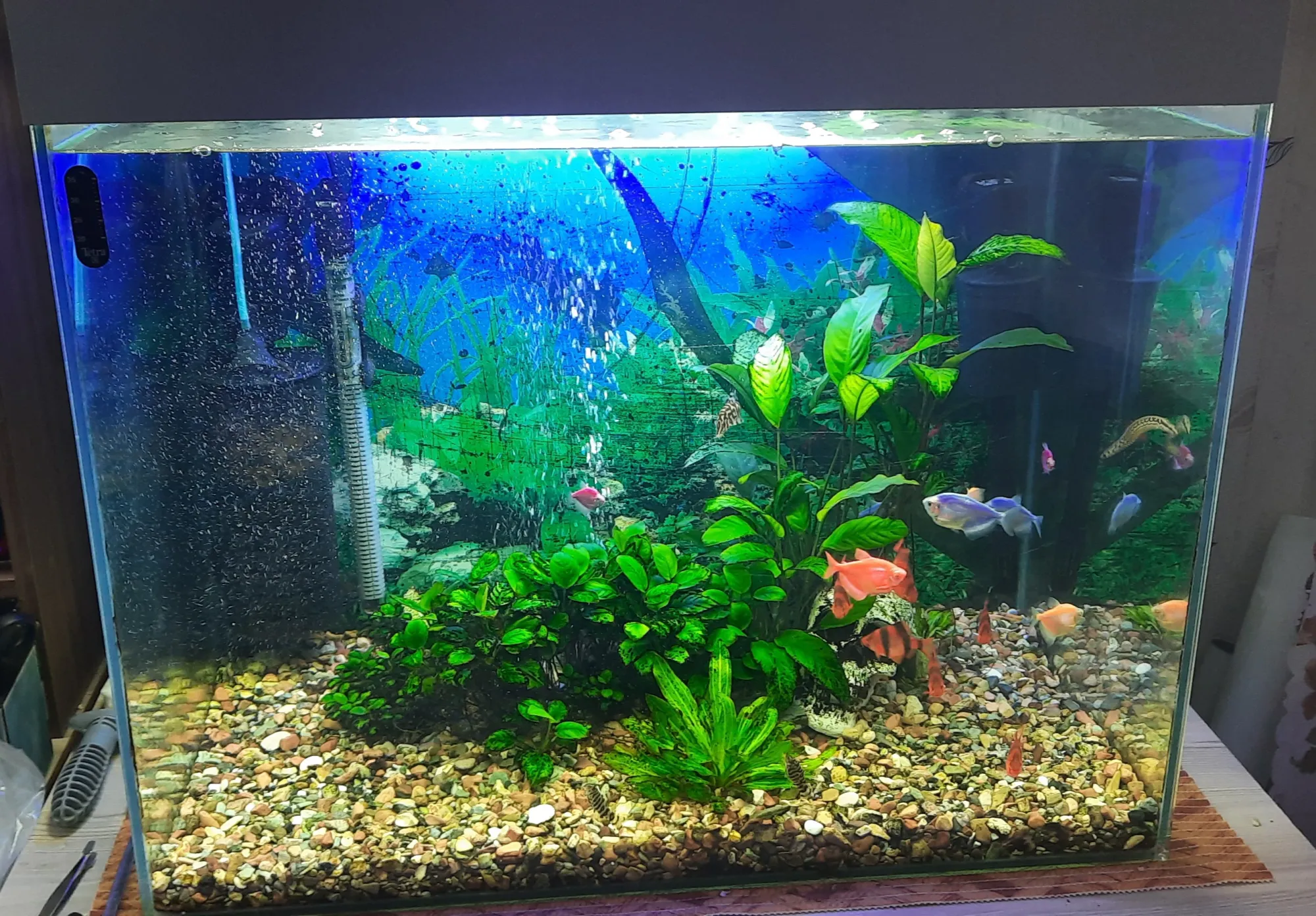 Хотя моя живность сами аквариум чистят. За дно отвечают улитки, коих там тьма в камушках, а за стенки анциструсы. Но фильтр то чистить надо🤔