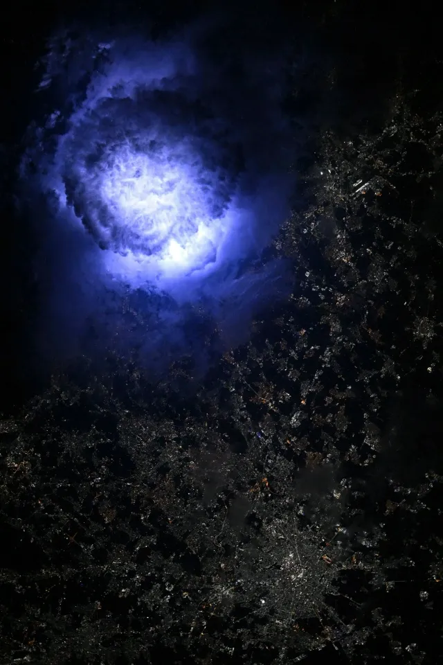 снимок молнии в грозовом облаке над Миланом
