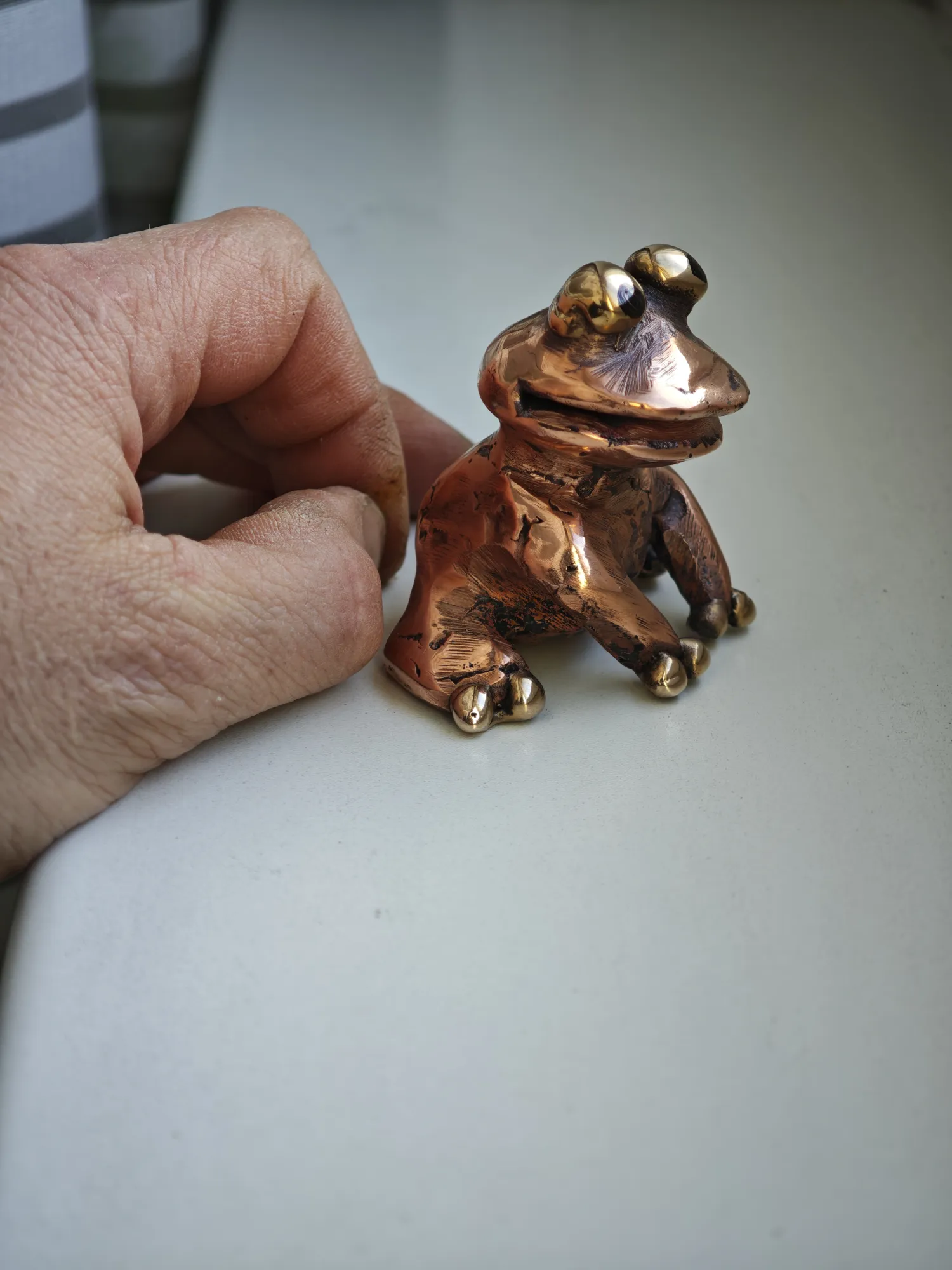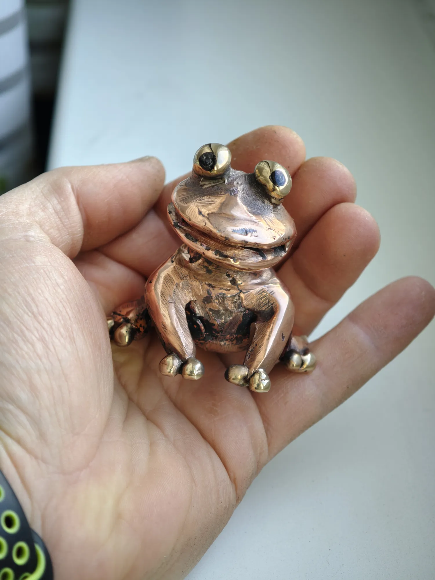 Медная лягуха, глаза и пальцы из бронзы )
