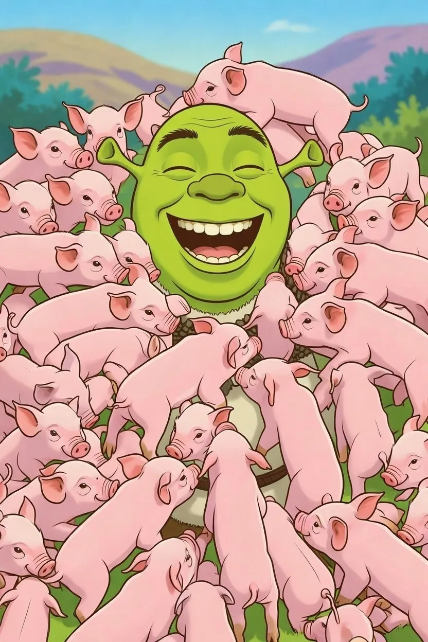 Вот!вот! Сразу скока пересечений. Шрек большой, а свины на нём маленькие... бритые морские свинки