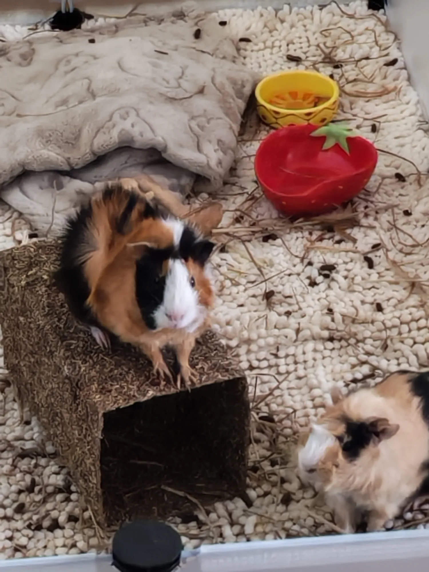 Ну теперь воспитывать придется, главное чтоб дети однополые были) мы брали двух свинок тоже, две девочки, молочные сестренки, рыжая и белая, белая брак по размеру рожать нельзя, я тоже паниковала - вдруг мальчик окажется кто-то, там же не понятно, не как у котов) но в итоге обе девочки оказались, правда потом тоже расселить пришлось, перестали ладить, рыжая крупнее и обижала мелкую.