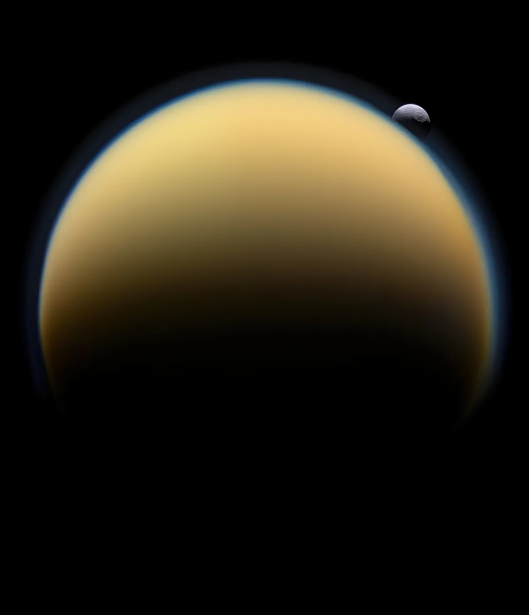 Крупнейший спутник Сатурна. Единственное, кроме Земли, тело в Солнечной системе, для которого доказано стабильное существование жидкости на поверхности, и единственный спутник планеты, обладающий плотной атмосферой.