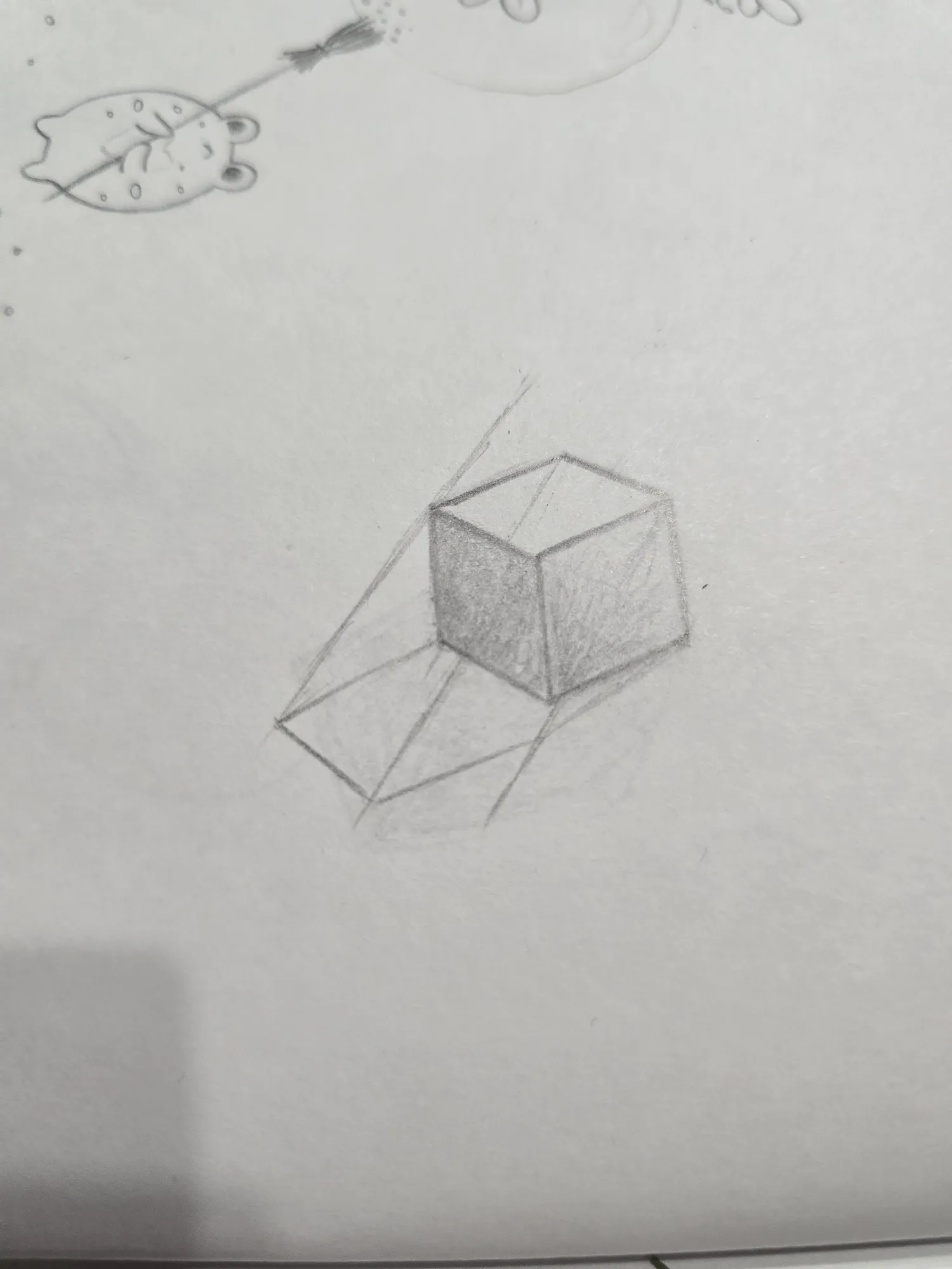 Сам кубик, на самом деле весьма кубичен, но тень, конечно, живёт в неэвклидовом пространстве. Давайте разбираться почему.