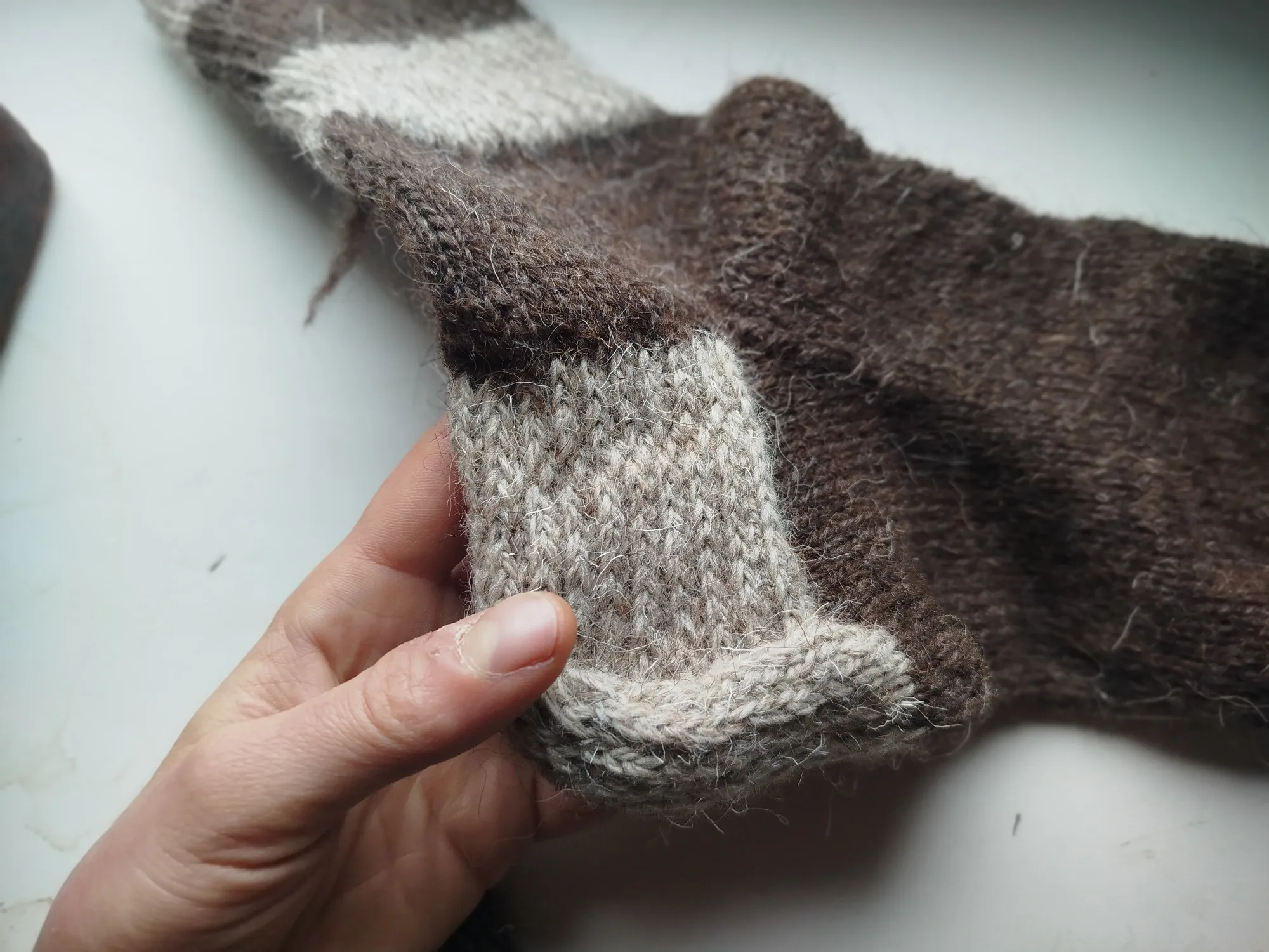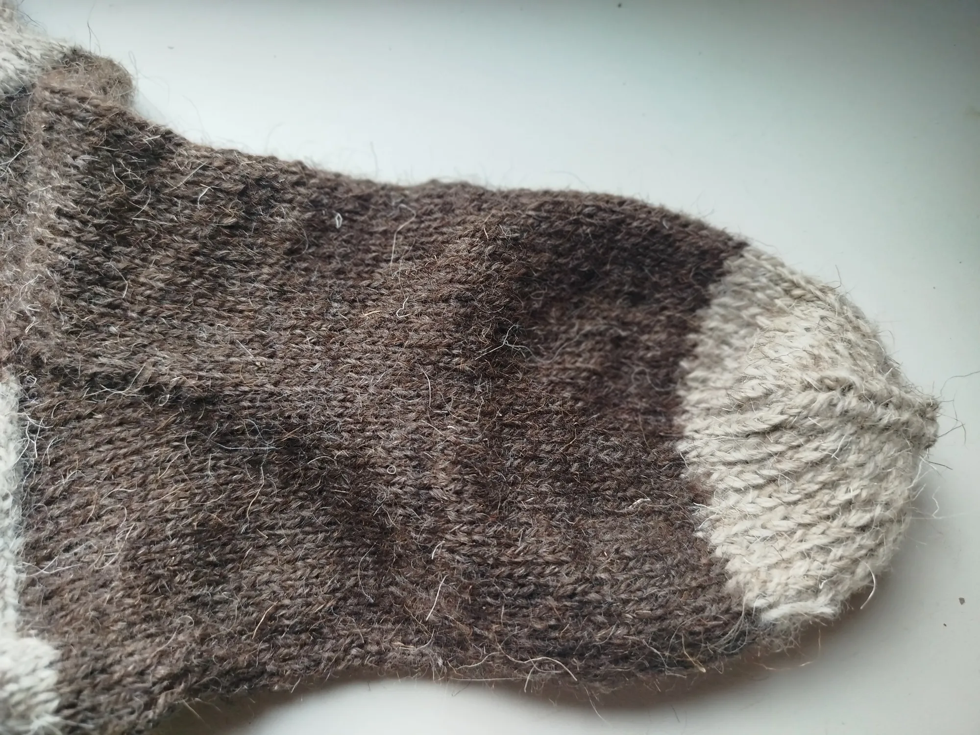 Собственно вот. Этот вариант носков с усиленной пяткой мне понравился тем, что для усиления не нужна дополнительная нить, вяжется основной- 1 ряд разбит на два : первый - одну снимаем, одну провязываем, второй- провязываем весь.