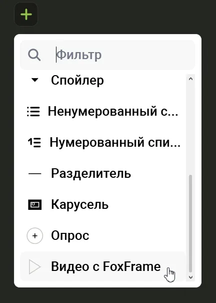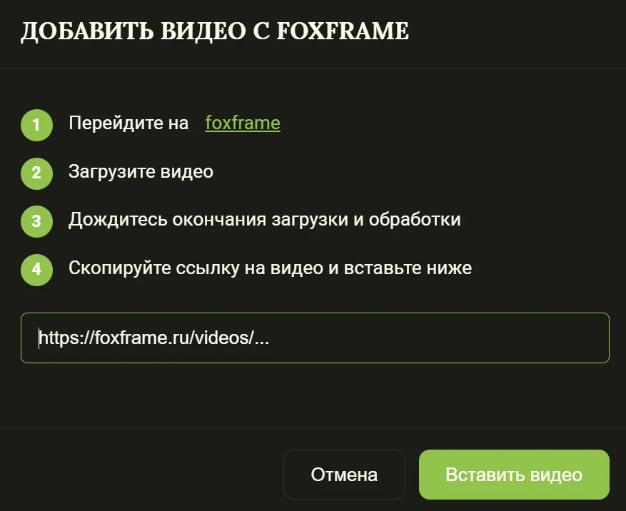 В редакторе поста появился инструмент "Видео с FoxFrame". Он позволяет удобнее вставлять видео в пост.