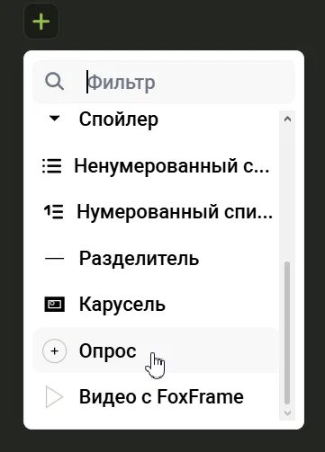 Инструмент доступен через кнопку “+” при создании или редактировании поста.