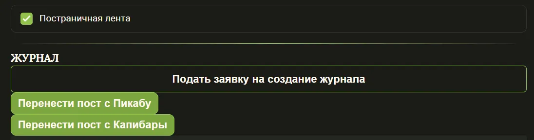 В настройках профиля появился раздел "Журнал", где можно подать заявку на создание собственного журнала.
