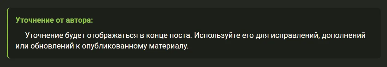 Если срок редактирования поста истёк, но появилась важная информация, теперь можно добавить «дополнение» (функция вызывается через меню поста).