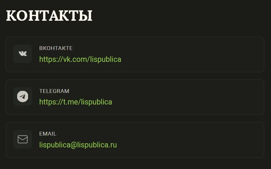 Добавлен раздел с контактами для обратной связи и ссылками на наши соцсети.