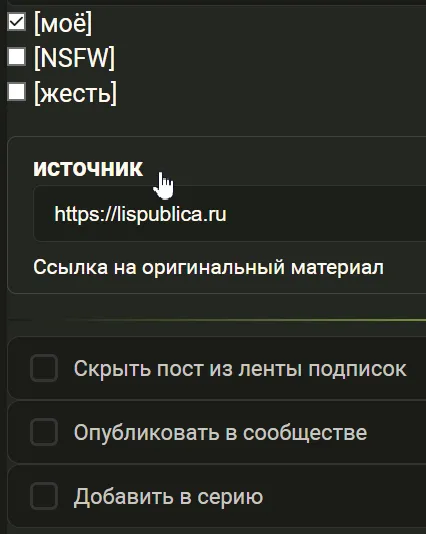 В редакторе поста появилось отдельное поле для ссылки на первоисточник.